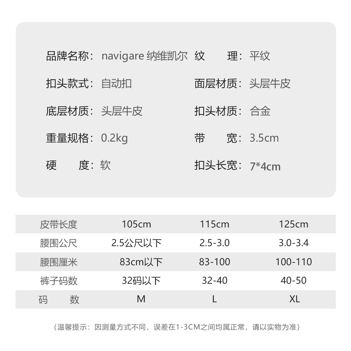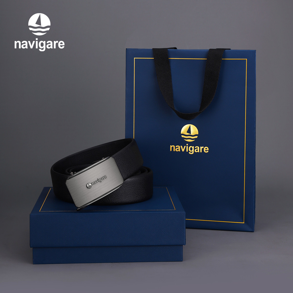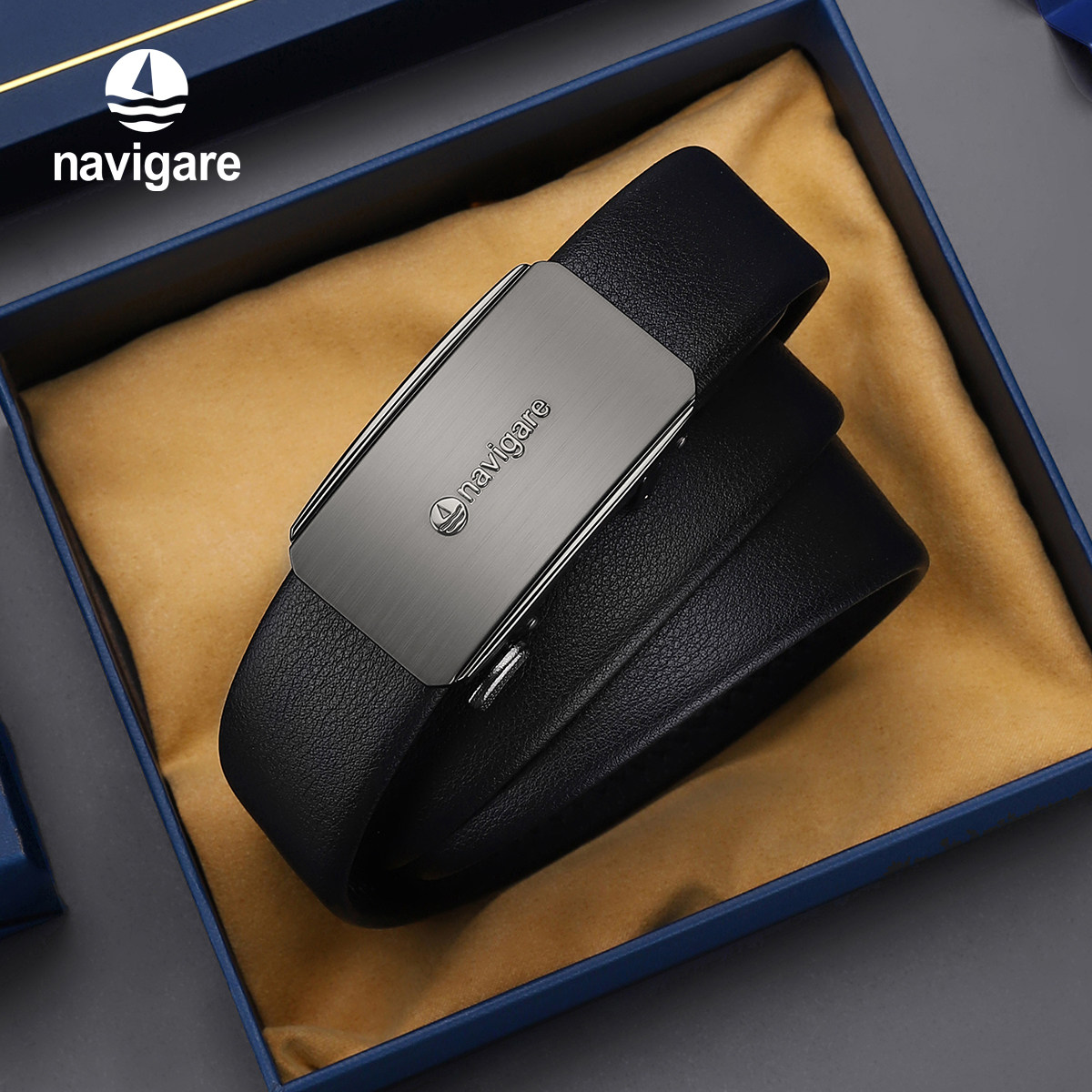 Navigare纳维凯尔意大利小帆船真皮男腰带自动扣内扣头层牛皮皮带