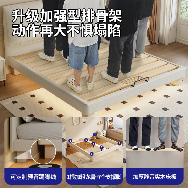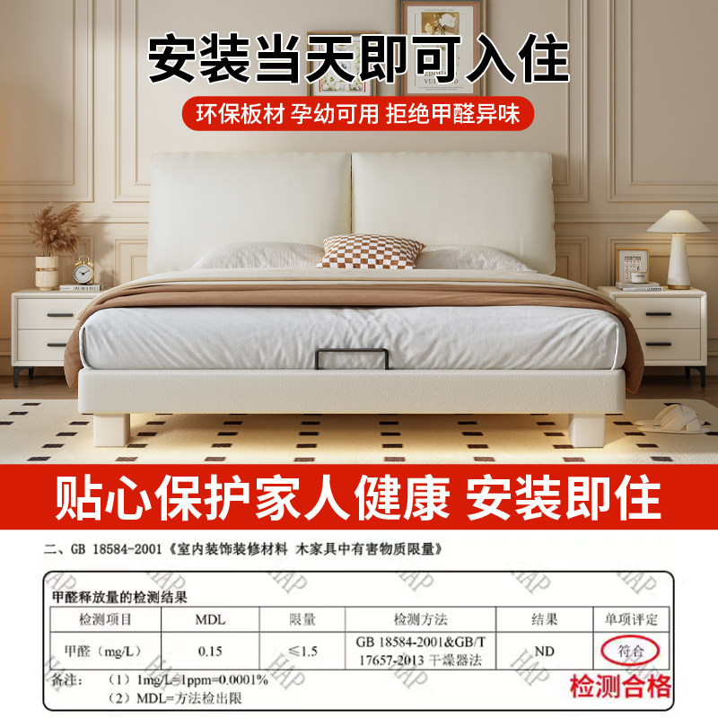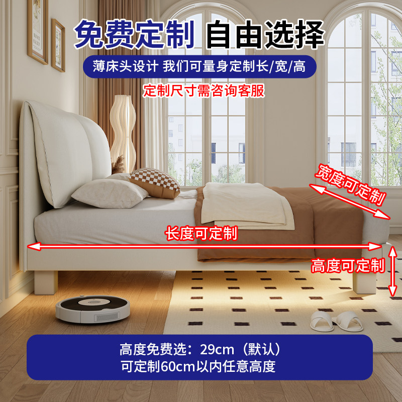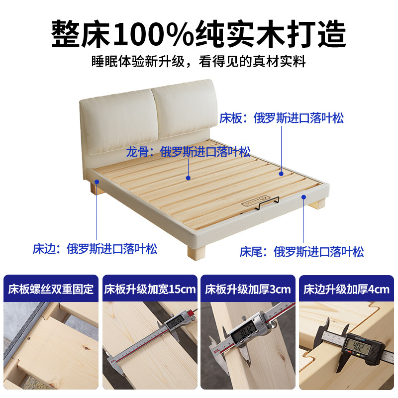 全实木大象耳朵奶油风静音床加厚燕尾榫床板小户型双人床支持定制