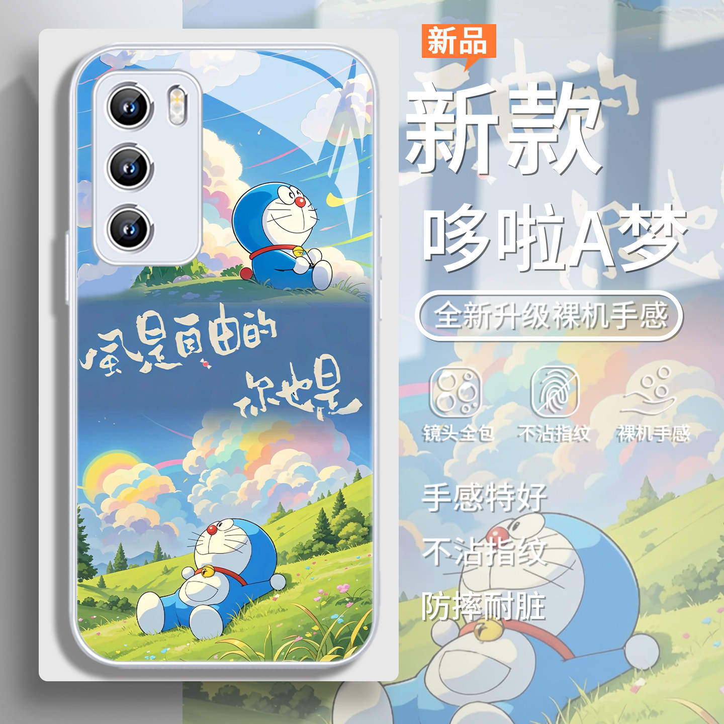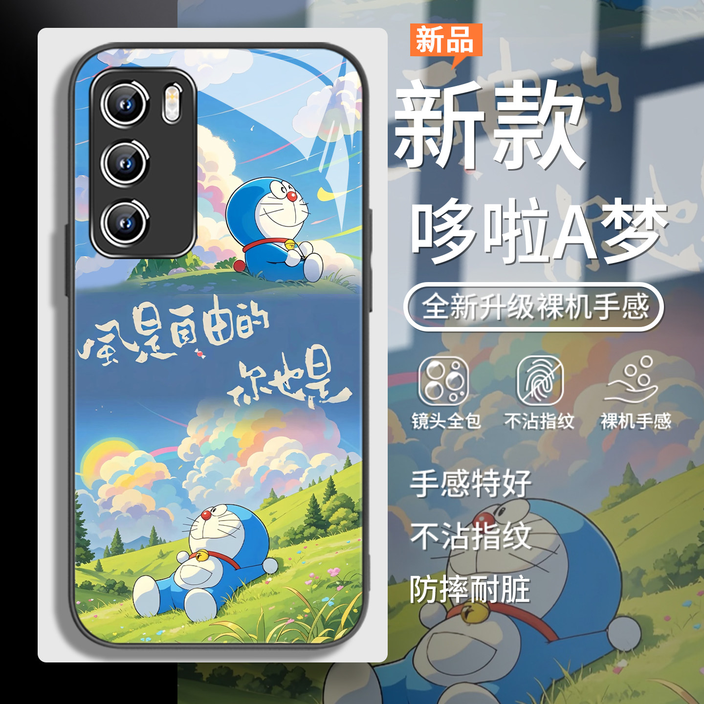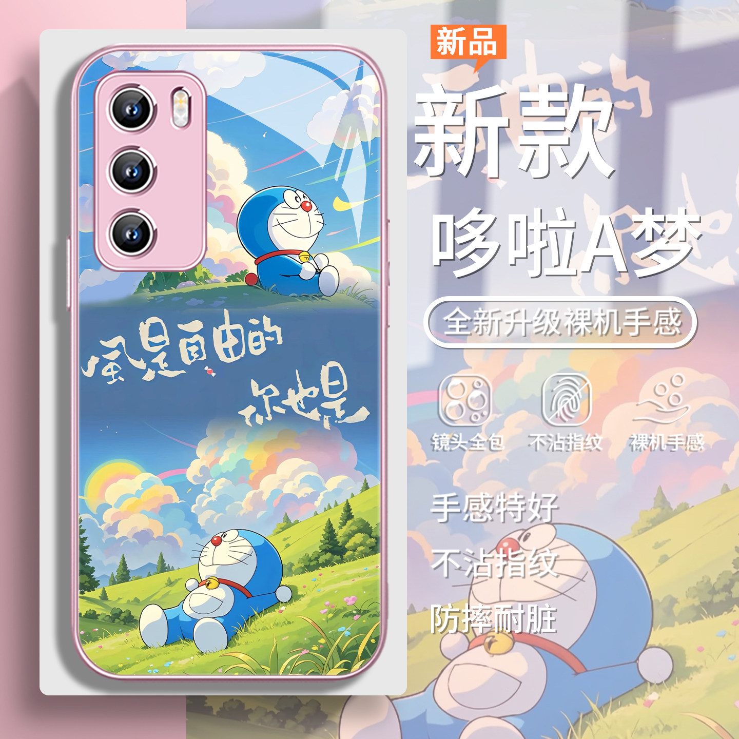 适用华为pura80pro手机壳夏日哆啦A梦mate70可爱荣耀400动漫300自由nova14/13/12草地p60女款p50玻璃magic7/6