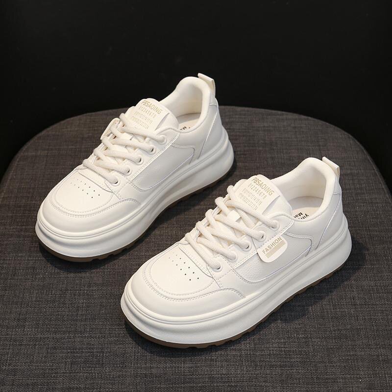 米白色原创小众厚底面包鞋女百搭运动休闲板鞋学生小白鞋2025新款