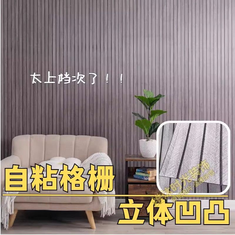 3d立体自粘木纹凹凸格栅板墙贴墙纸客厅电视背景墙面装饰防水防潮