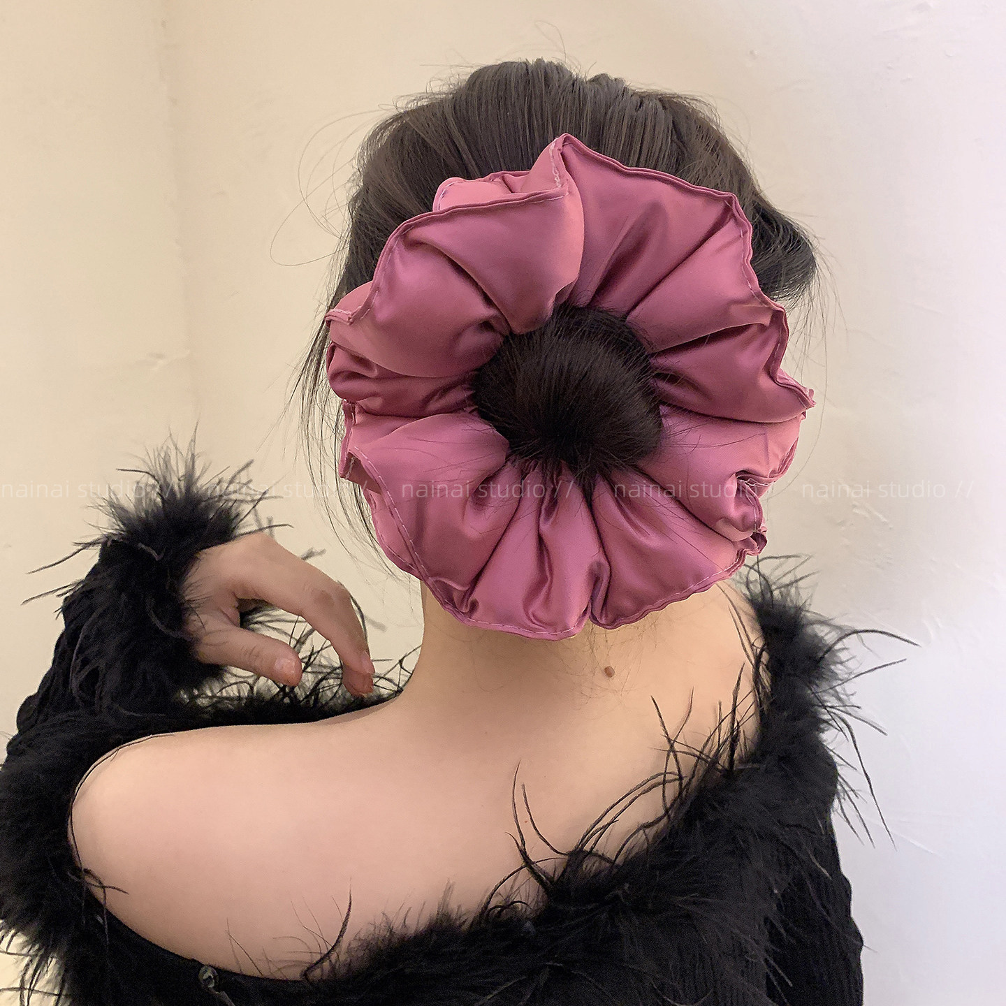 真丝枕头发圈睡眠褶皱花边大肠发圈大号填充棉复古肥肠圈卷发神器