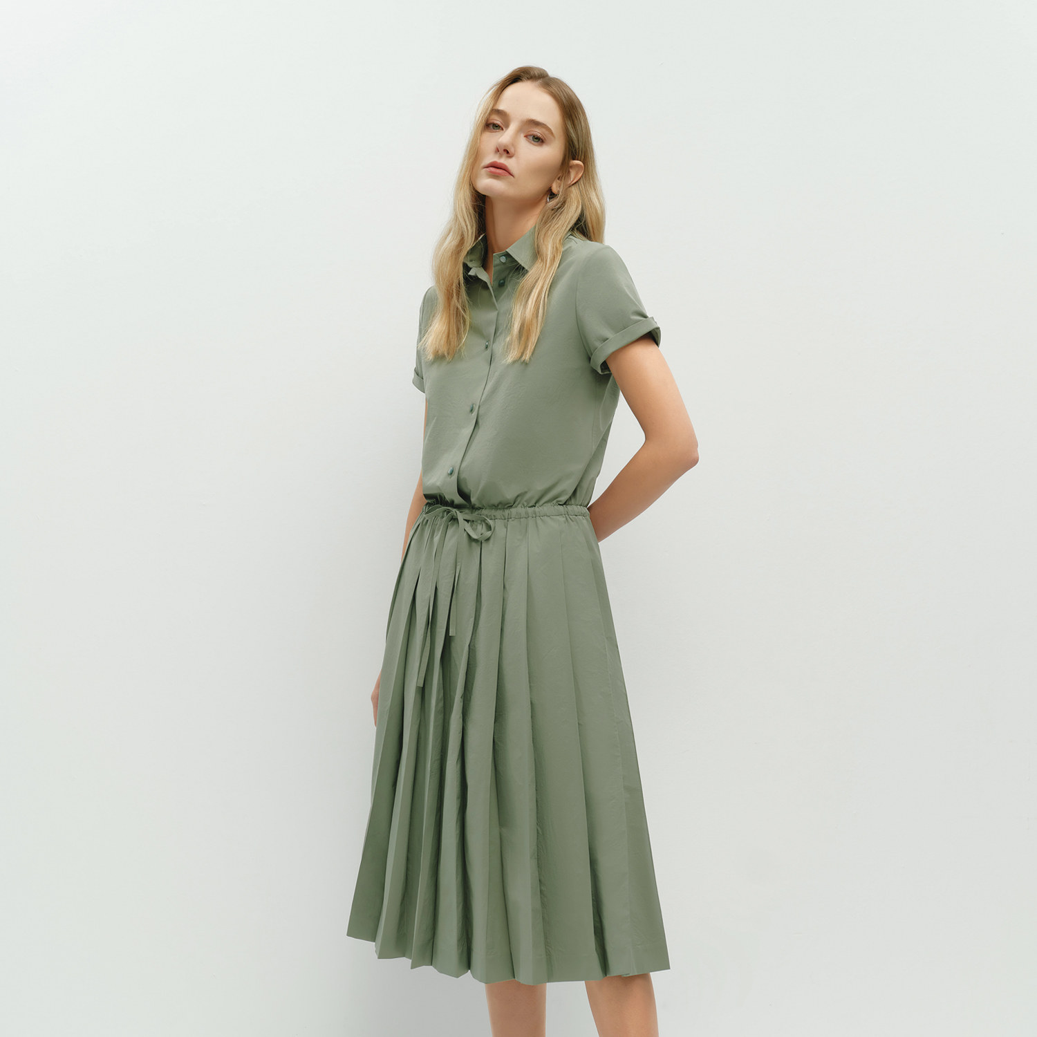【SOLOTEX系列】OVV2025春夏新款女装百褶设计短袖连衣裙