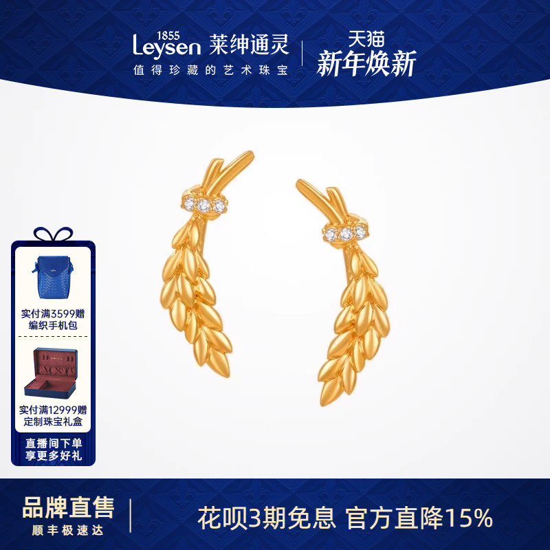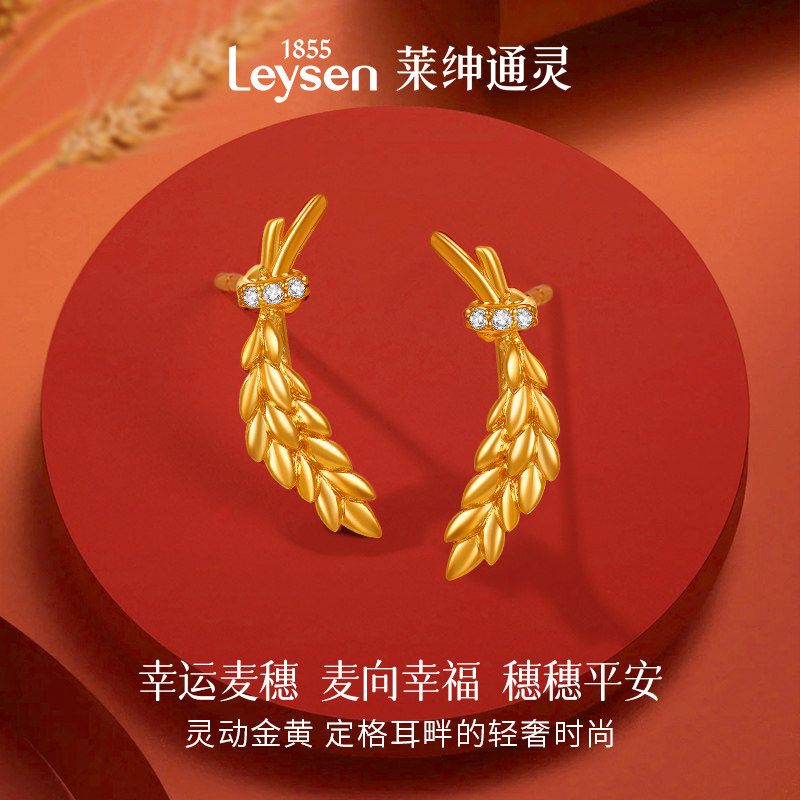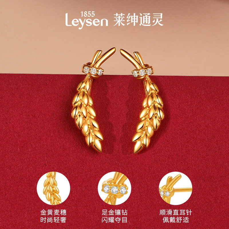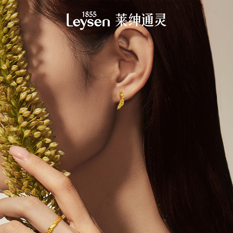 莱绅通灵珠宝 GoldenFlame系列 麦穗999足金耳钉耳环黄金耳饰