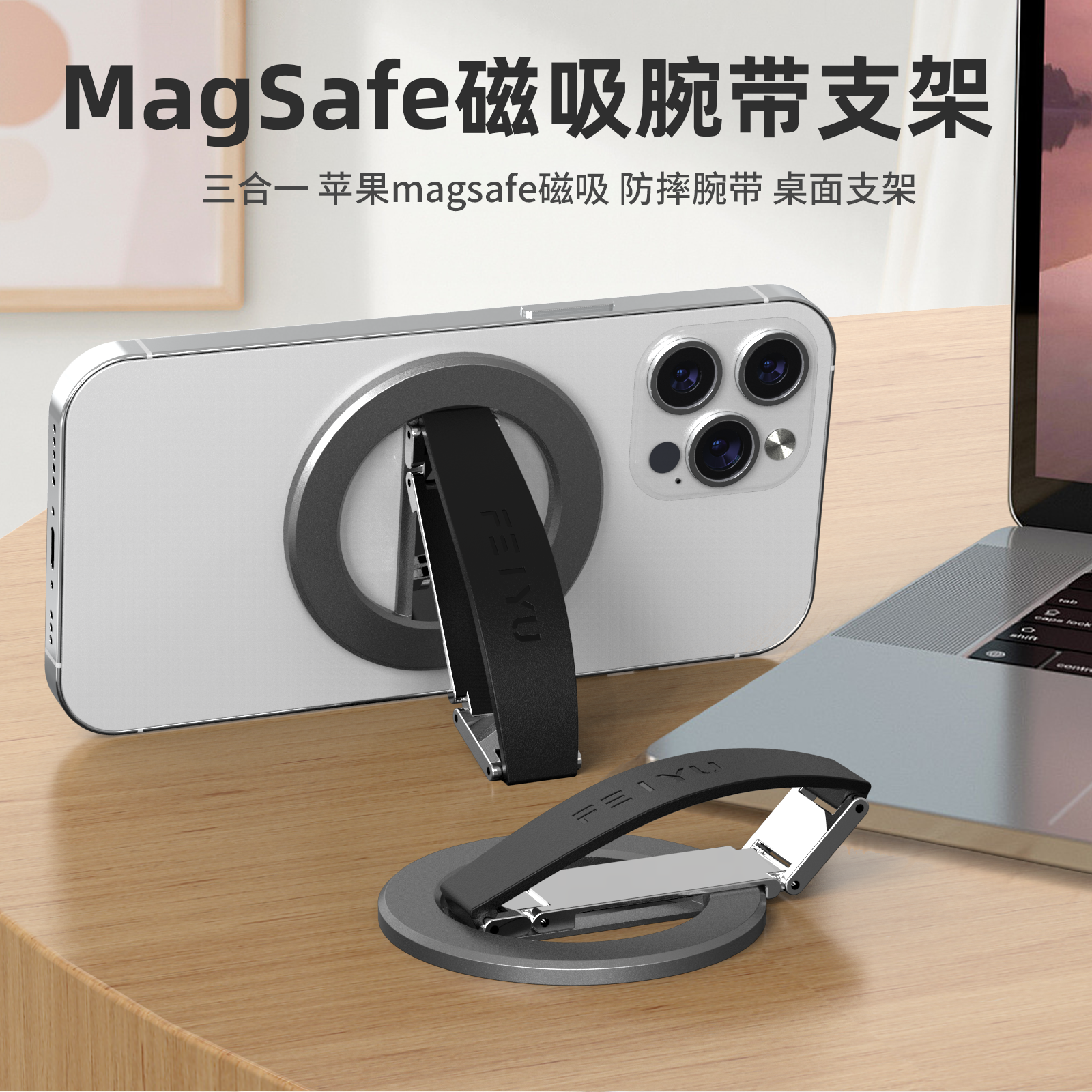 新款磁吸手机指环扣支架适用苹果iphone magsafe磁吸带手机支架桌面轻薄旋转折叠便携防摔腕带平板ipad支撑架