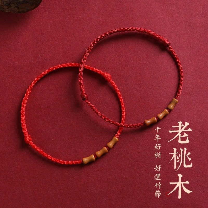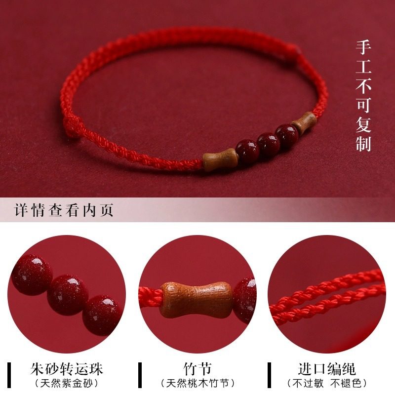 朱砂红绳手链女桃木竹节上岸手绳转运珠脚链编织绳本命年红手绳男