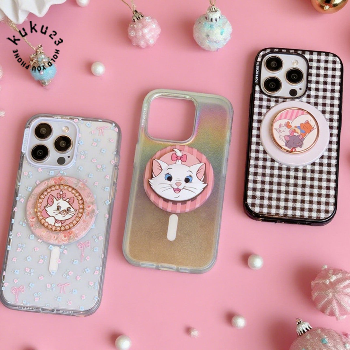 戳戳玛丽猫联名迪士尼泡泡小猫被窝新款强磁吸气囊支架防摔手机壳
