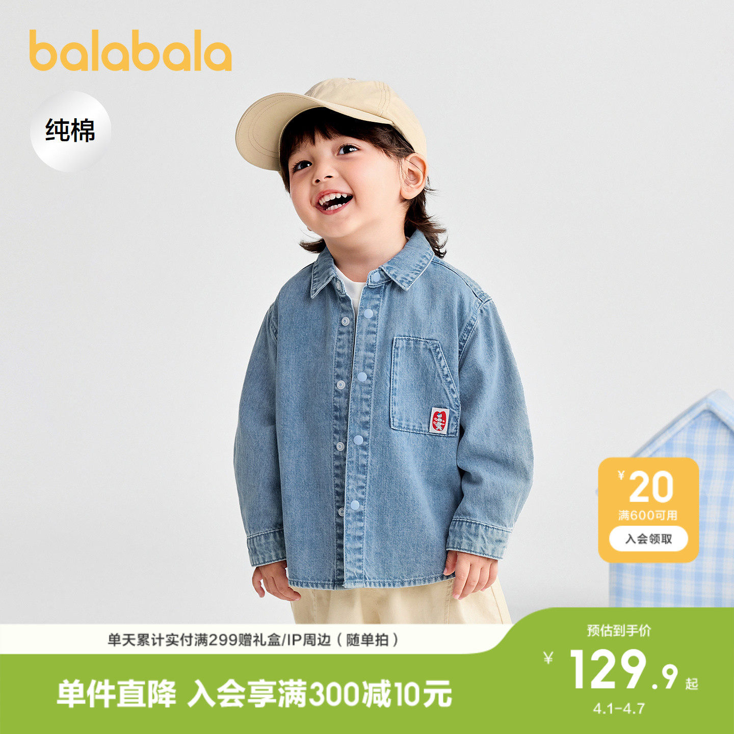 巴拉巴拉童装宝宝衬衫长袖牛仔外套男童上衣2026休闲春装时尚潮酷