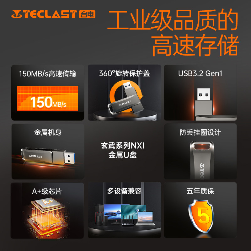 台电3.2高速u盘优盘可定制U盘64g大容量128g高速电脑优盘办公玄武