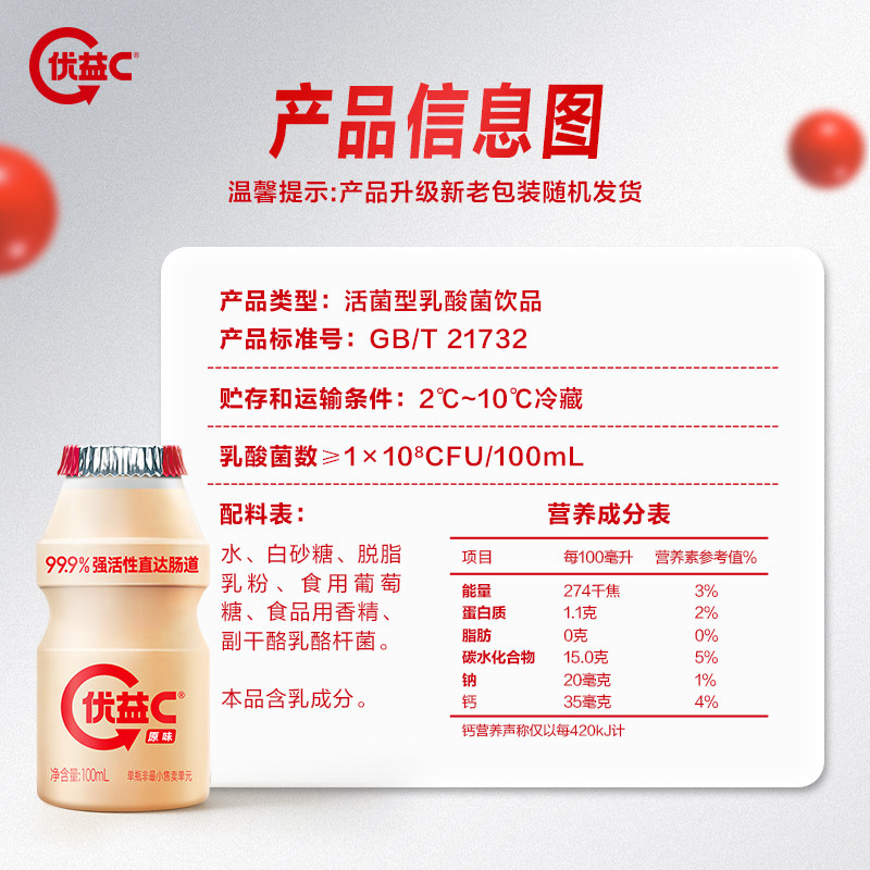 优益C活菌型乳酸菌饮品0脂500亿益生菌多口味混合乳饮料酸牛奶