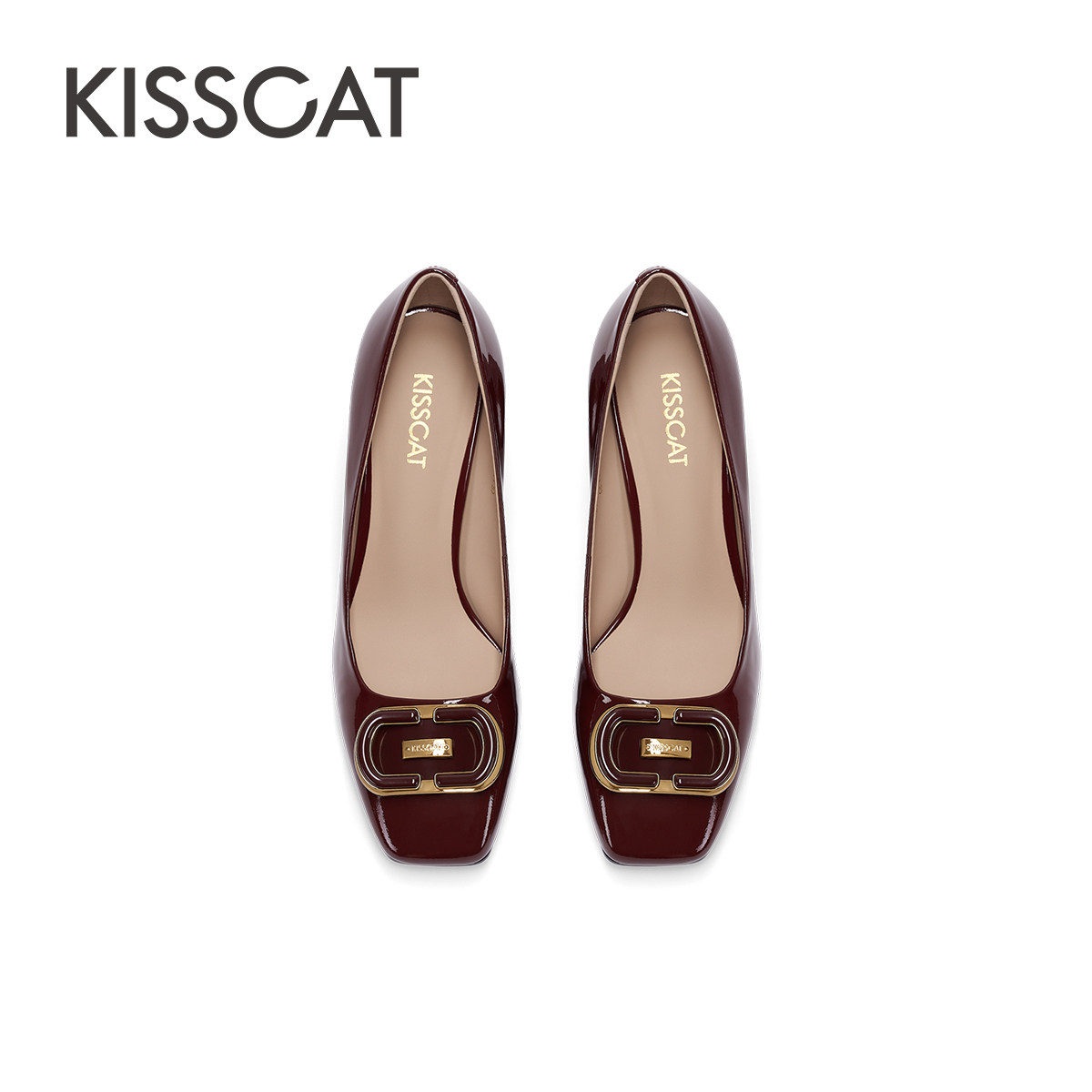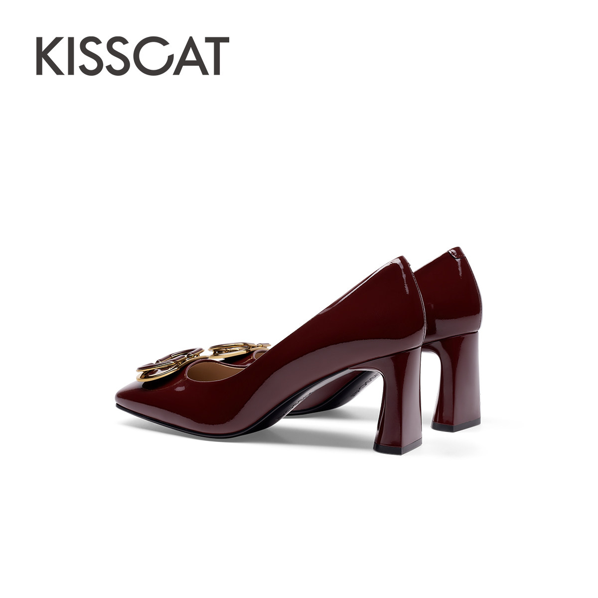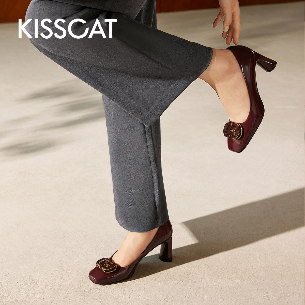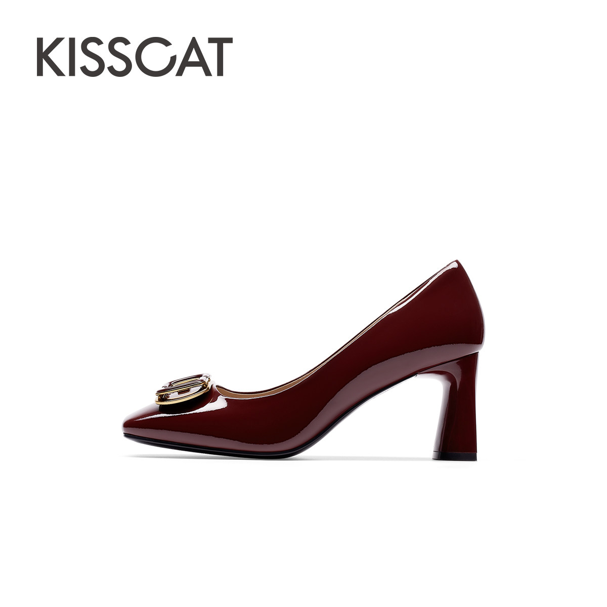 KISSCAT接吻猫秋季新款浅口粗跟法式单鞋气质高跟鞋不累脚