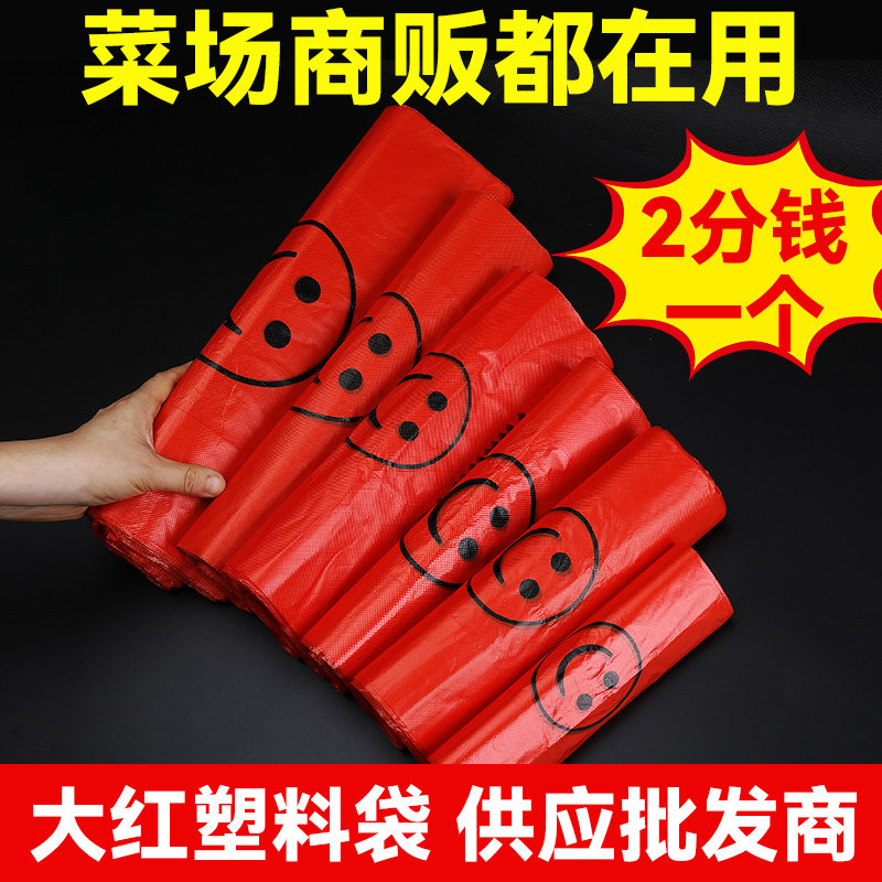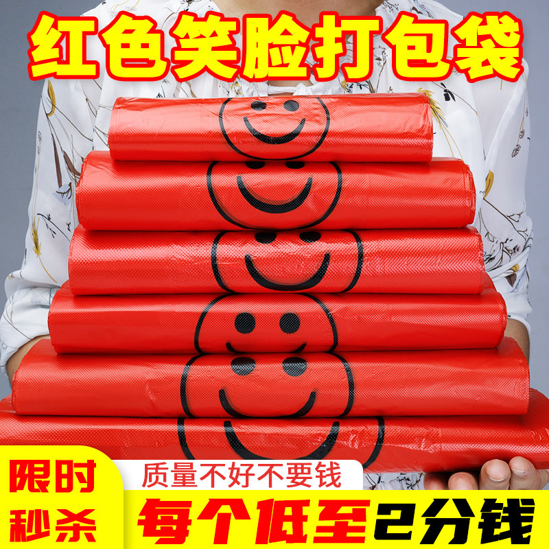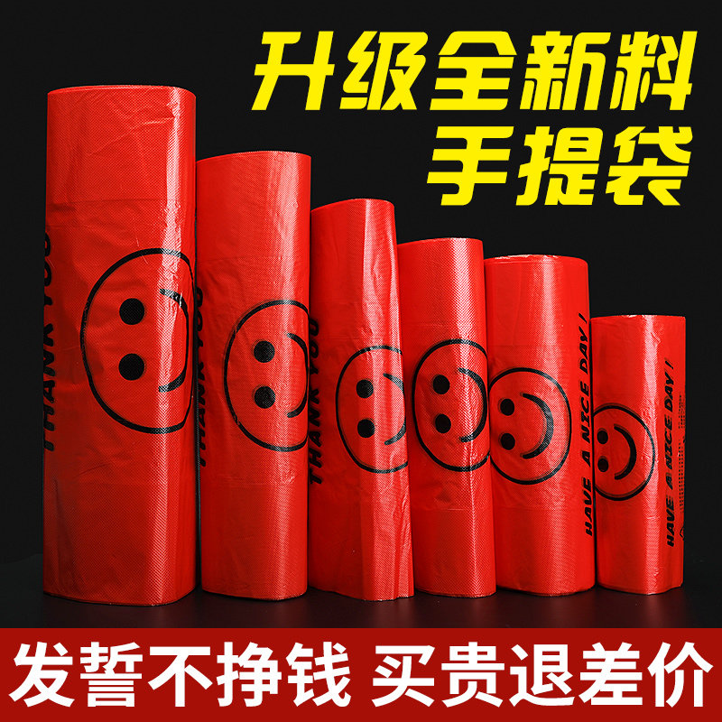 红色塑料袋食品袋手提背心袋子批发外卖打包方便袋超市购物袋笑脸