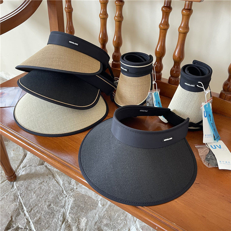 【新品】草编空顶帽子女夏季骑车遮阳大帽檐防晒草帽可折叠款遮脸