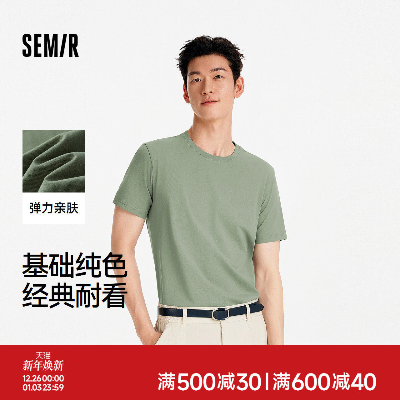 [商场同款]森马短袖T恤男简约纯色弹力修身2025夏季新款上衣百搭