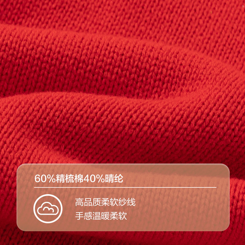 [骏马福裳]齐齐熊男童毛衣开衫冬装新年红色加厚宝宝毛线外套上衣