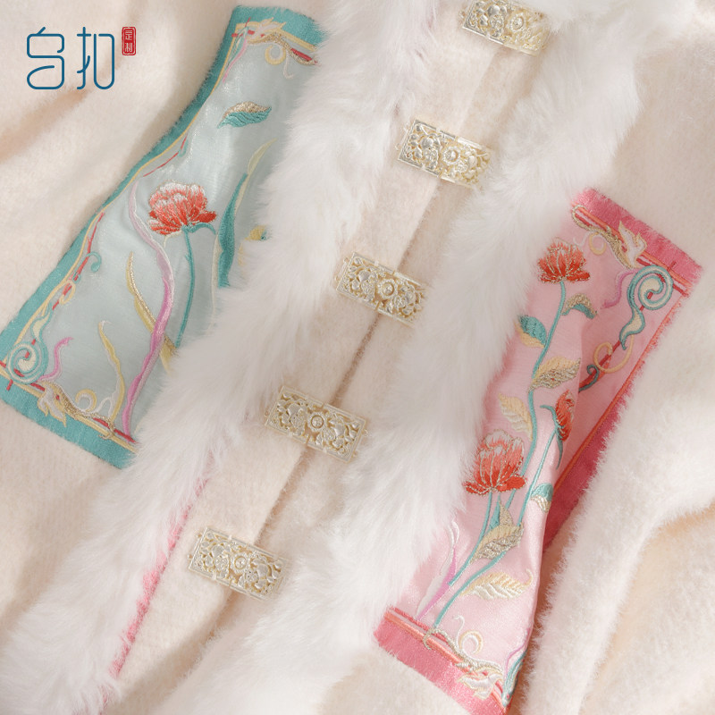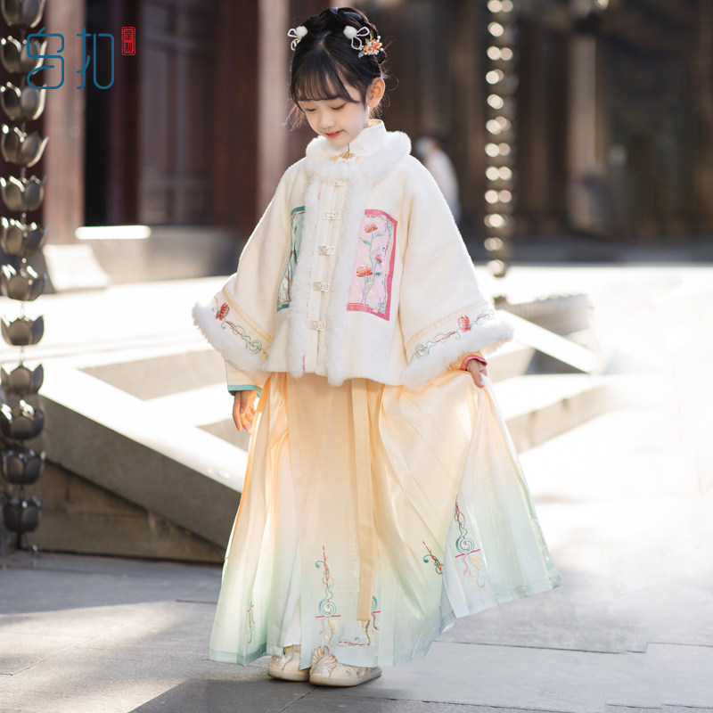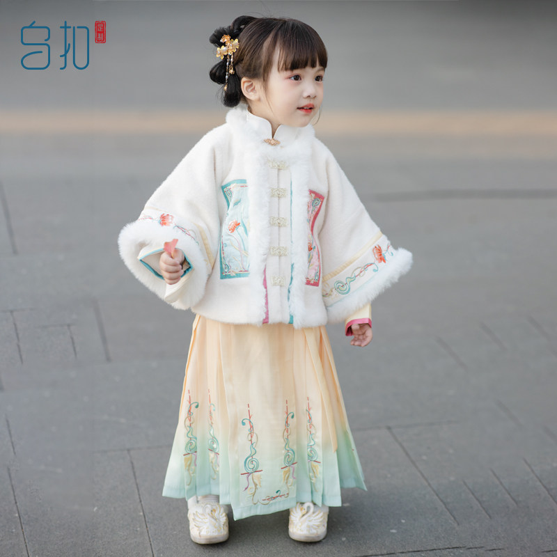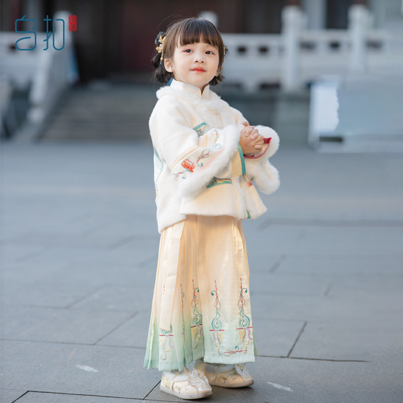 乌扣.白狐 女童汉服冬装加厚保暖套装儿童中国风高端亲子明制汉服