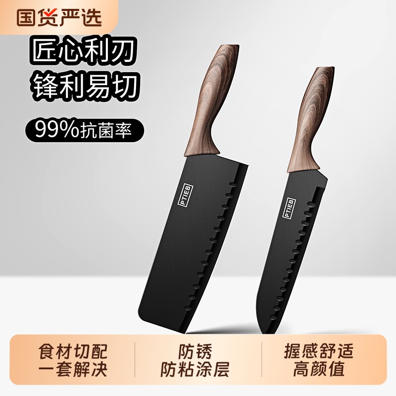 菜刀家用厨房钛刀切片切菜刀厨师专用刀具套装三德刀水果刀砧板