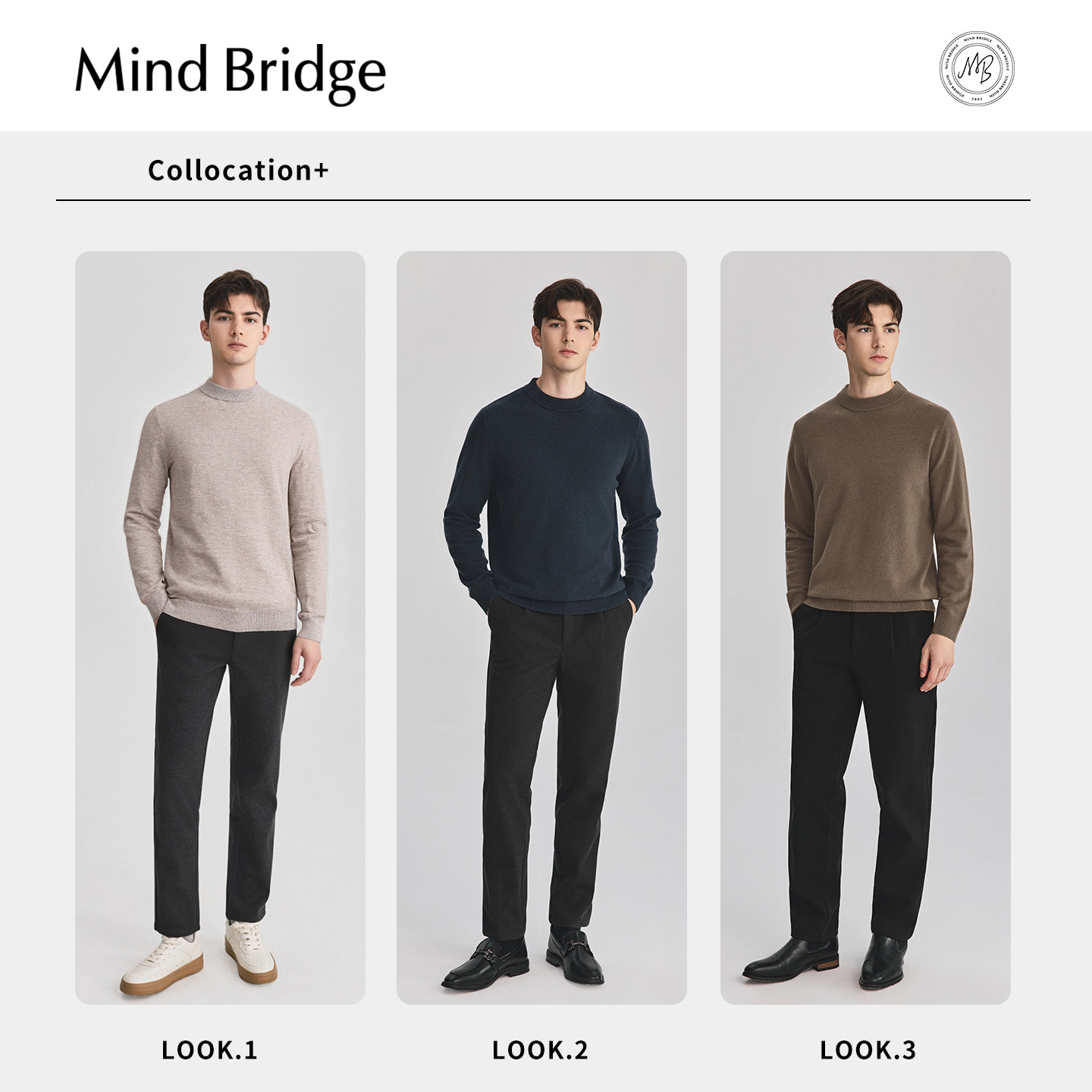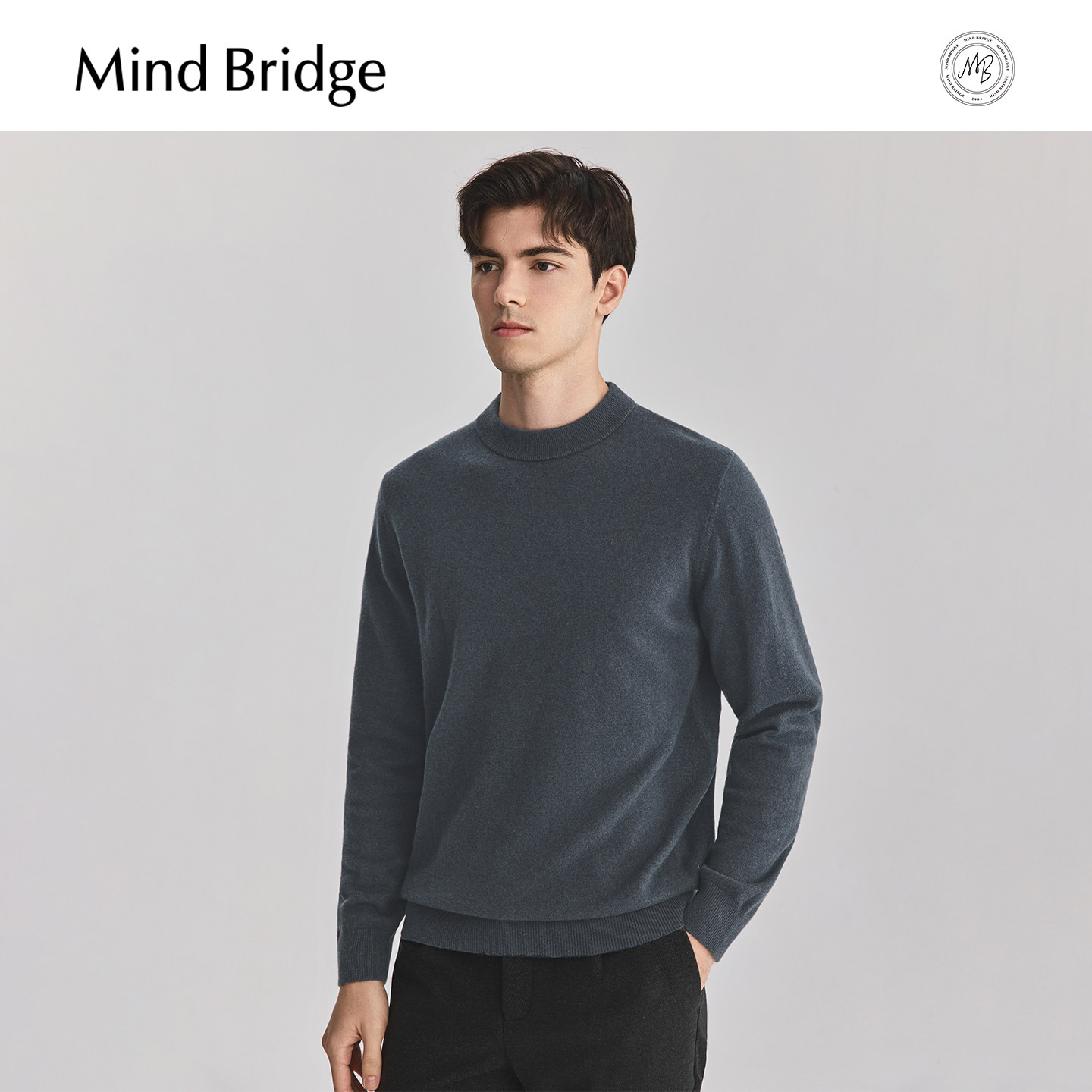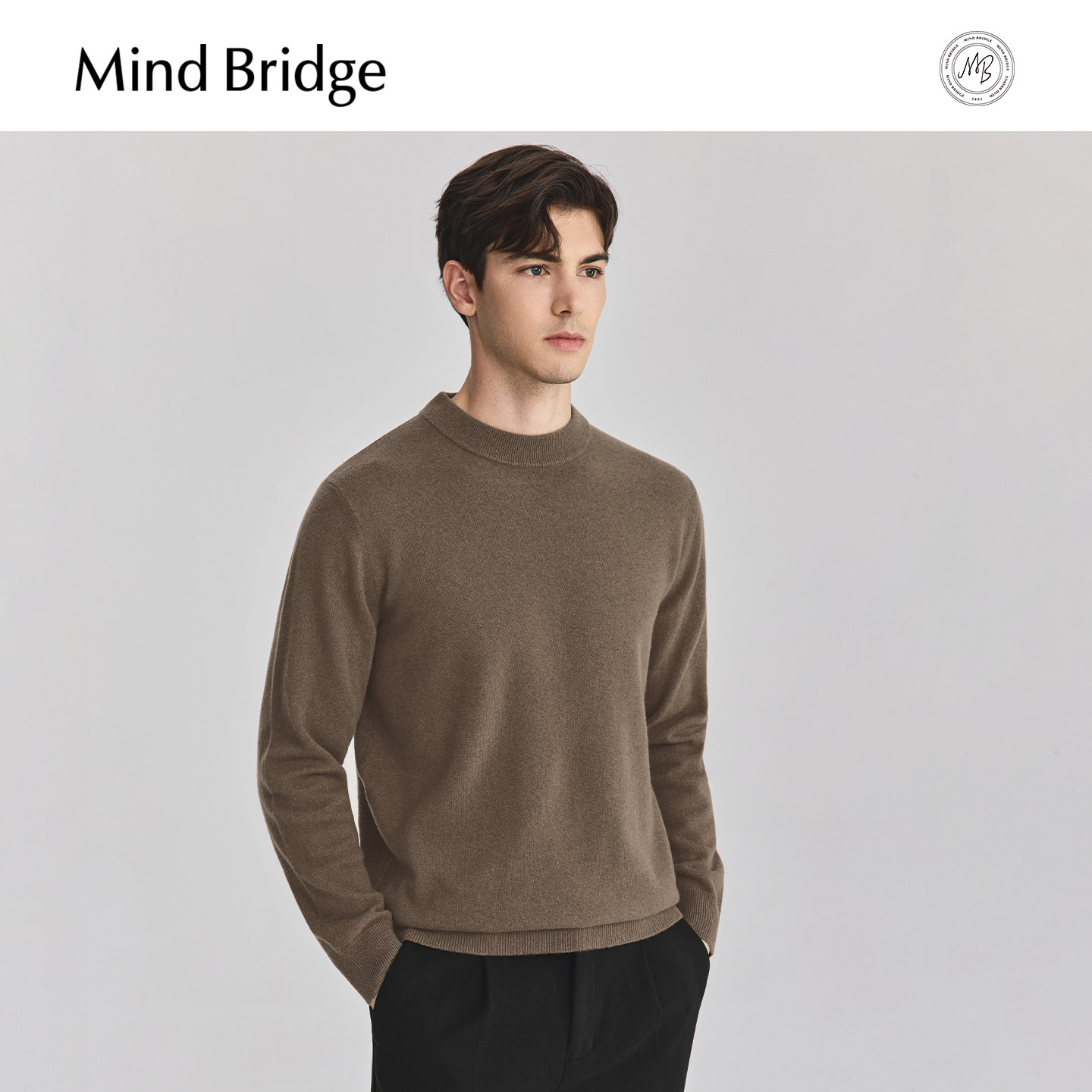 Mind Bridge【绵羊毛】男士厚款圆领毛衣2025年秋重磅纯色羊毛衫