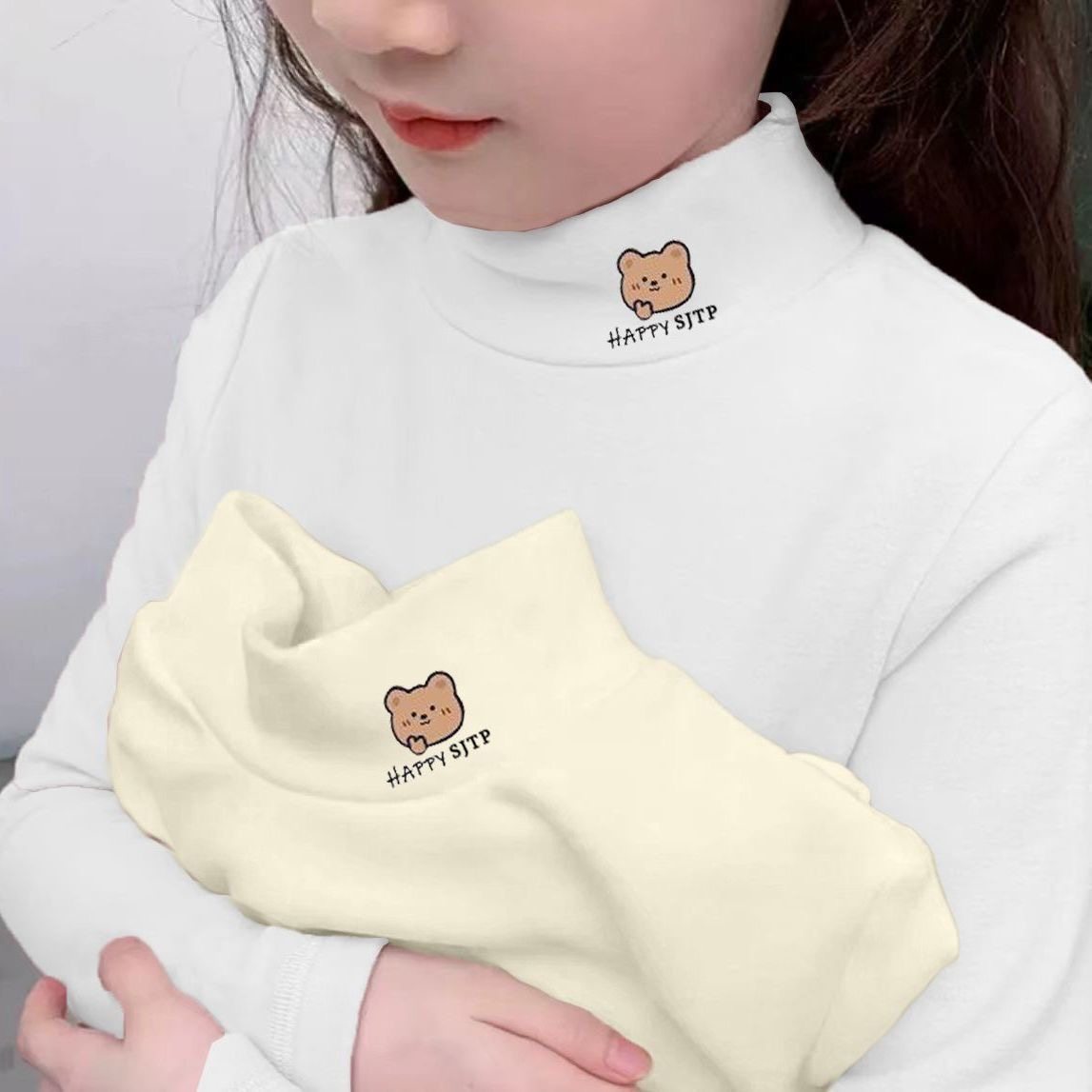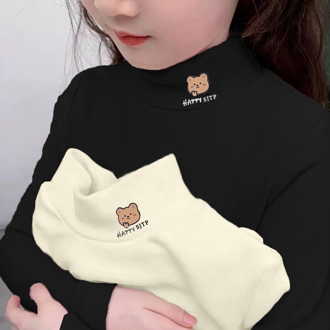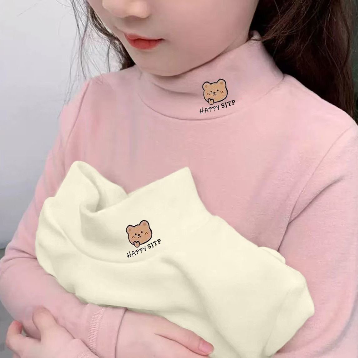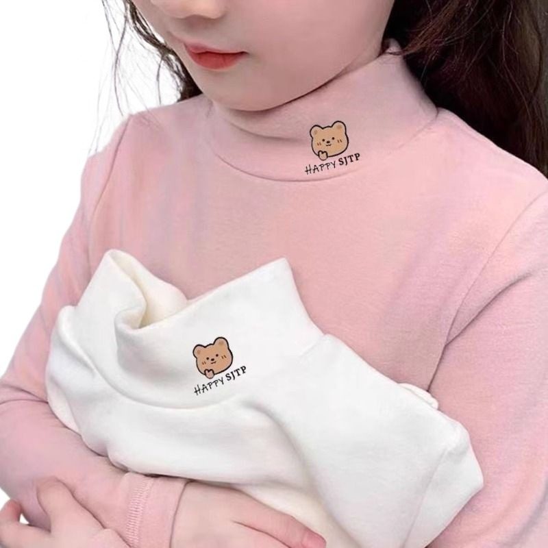 儿童德绒保暖打底衫秋冬女童t恤半高领中大小童保暖内搭长袖上衣