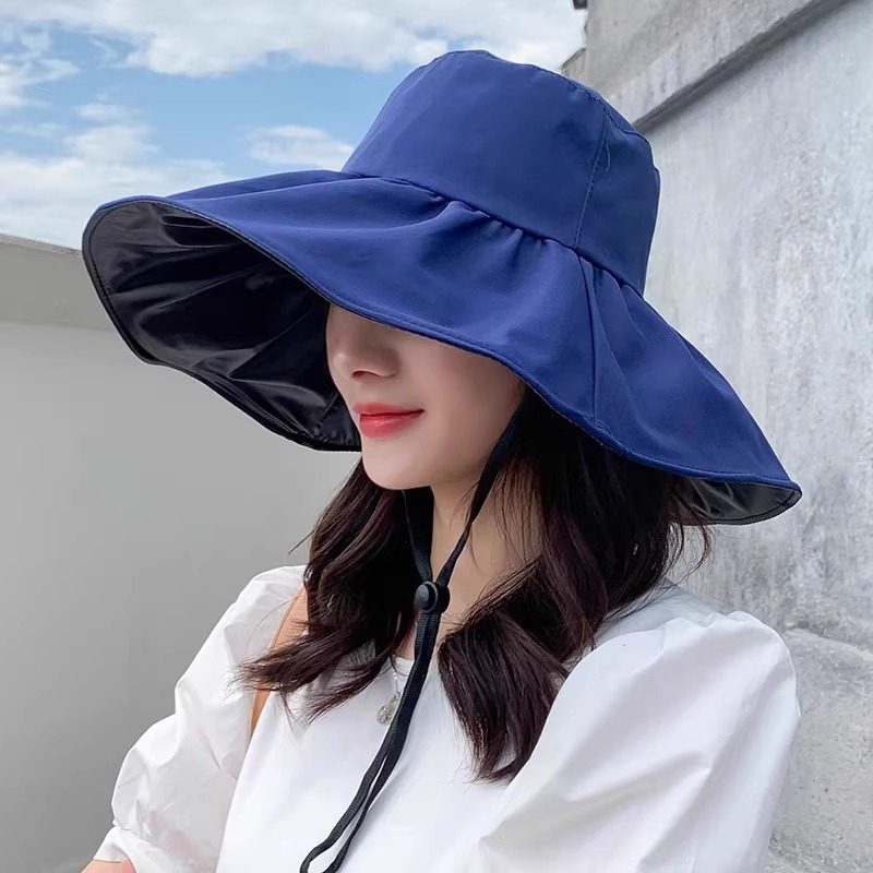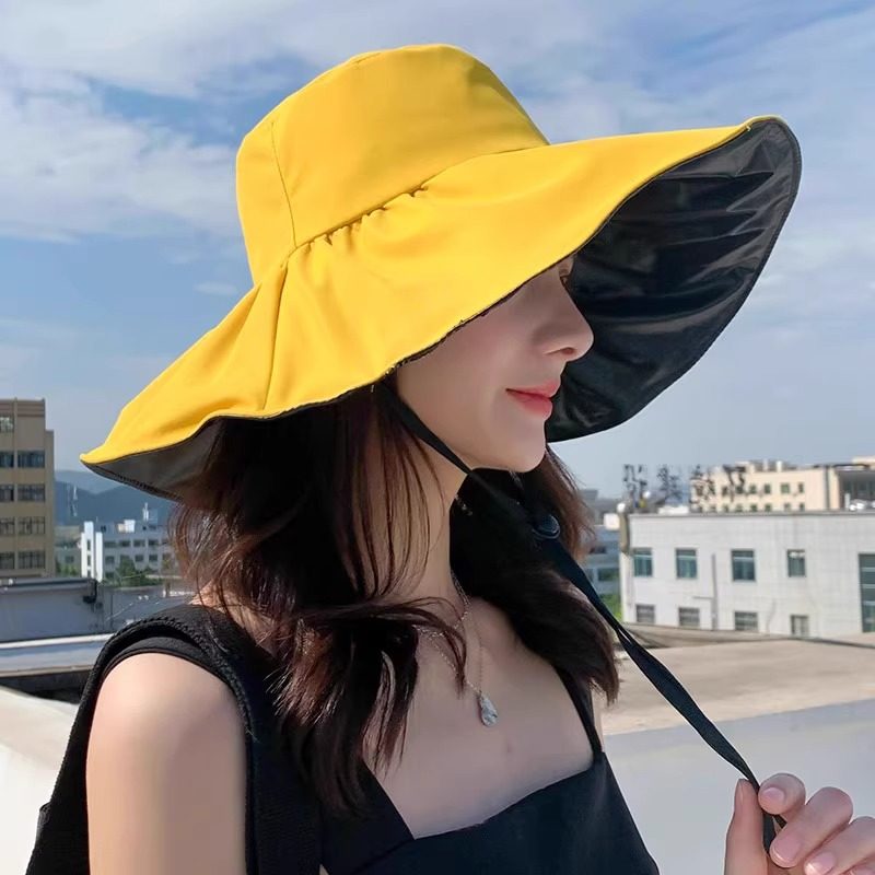 uv防晒遮阳帽子女夏新款遮脸防紫外线太阳帽大帽檐渔夫帽折叠防护