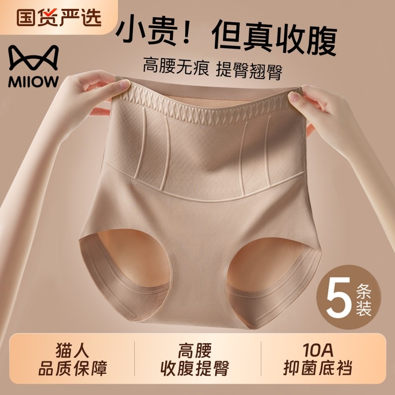 猫人无痕高腰收腹裤强力收腹收小肚子塑身美体提臀内裤女翘臀神器