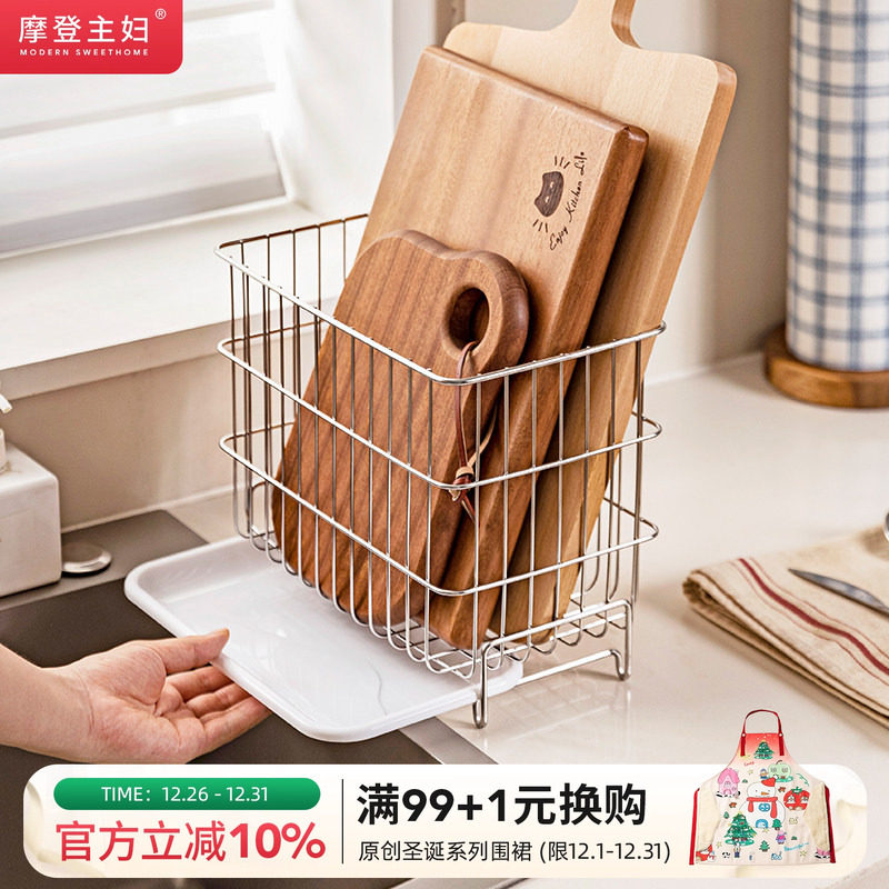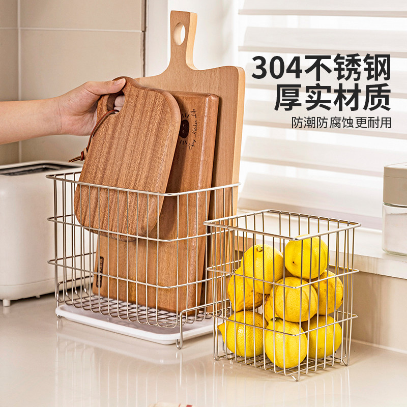 摩登主妇304不锈钢菜板收纳筐厨房砧板鸡蛋面包储物篮浴室杂物篮