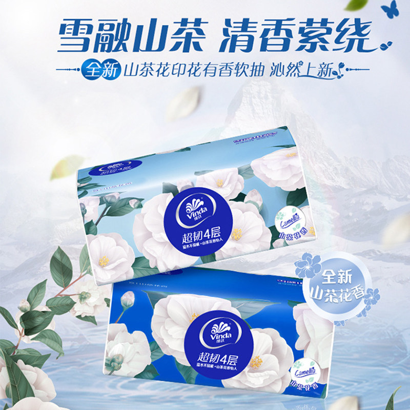 维达有香抽纸超韧山茶花印花90抽20包整箱家庭装用纸实惠餐巾纸