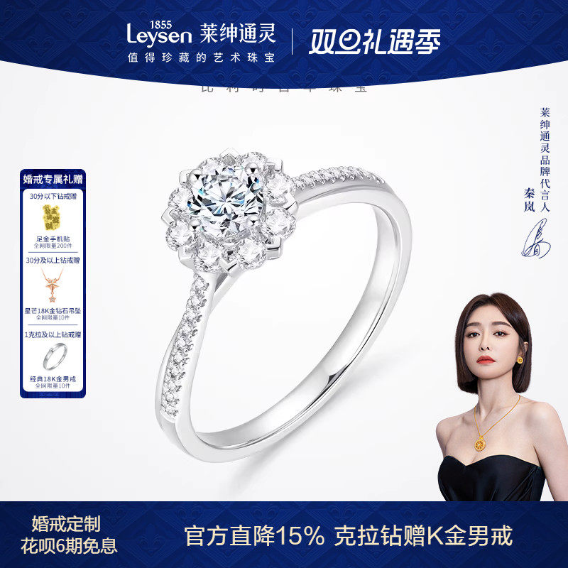 【婚戒定制】莱绅通灵珠宝 绽放 18k金钻石戒指花型钻戒群镶显钻