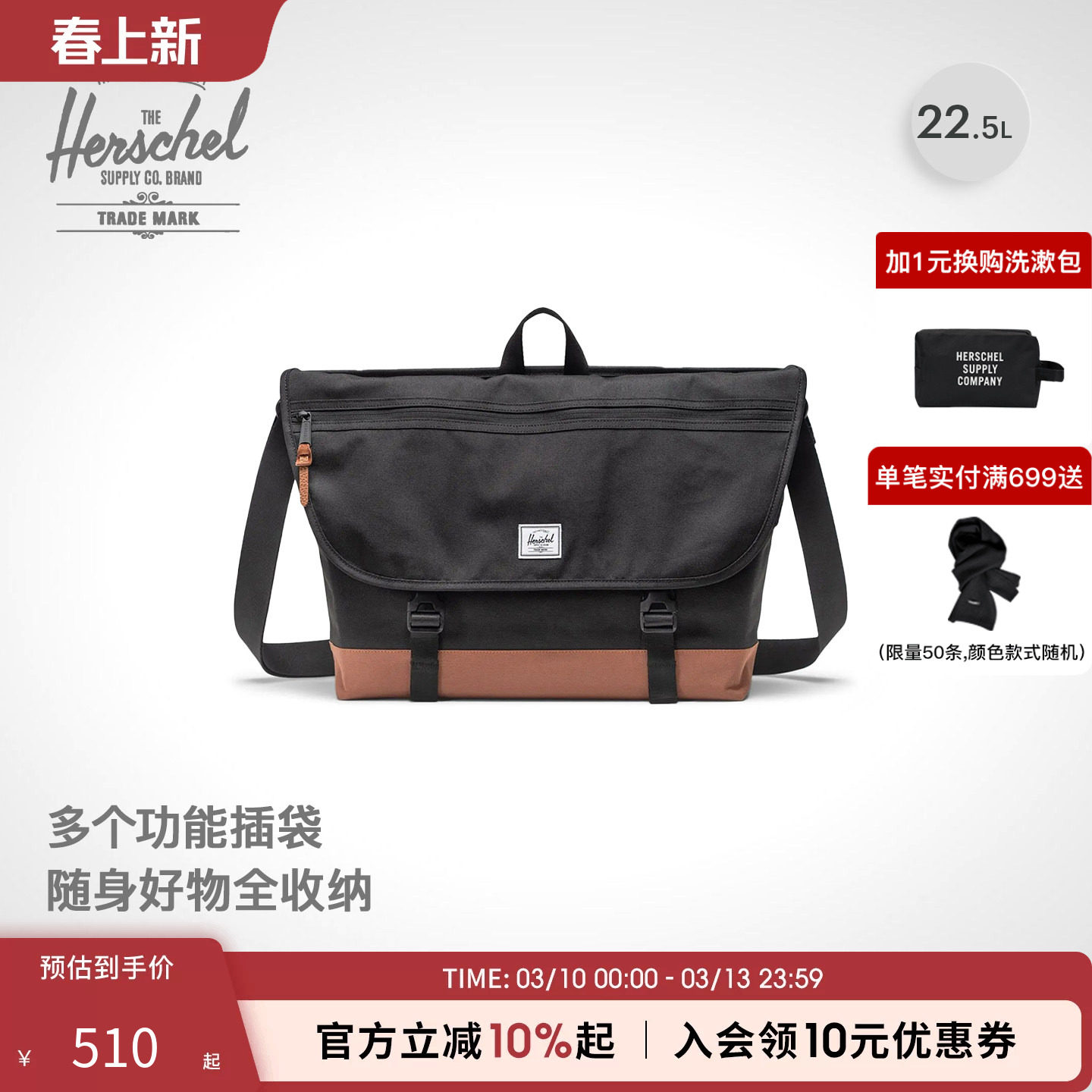 herschel赫行经典cove男士斜挎包户外休闲包男款高级感斜挎背包