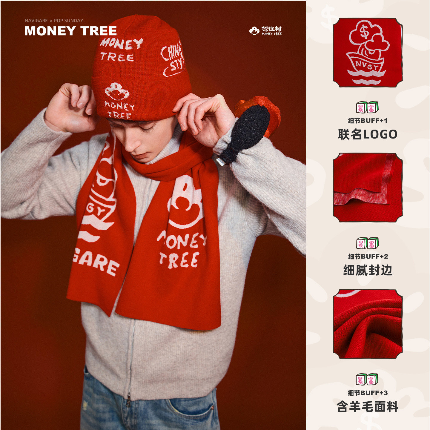 [POPSUNDAY摇钱树系列]Navigare小帆船羊毛围巾男女同款红色围脖