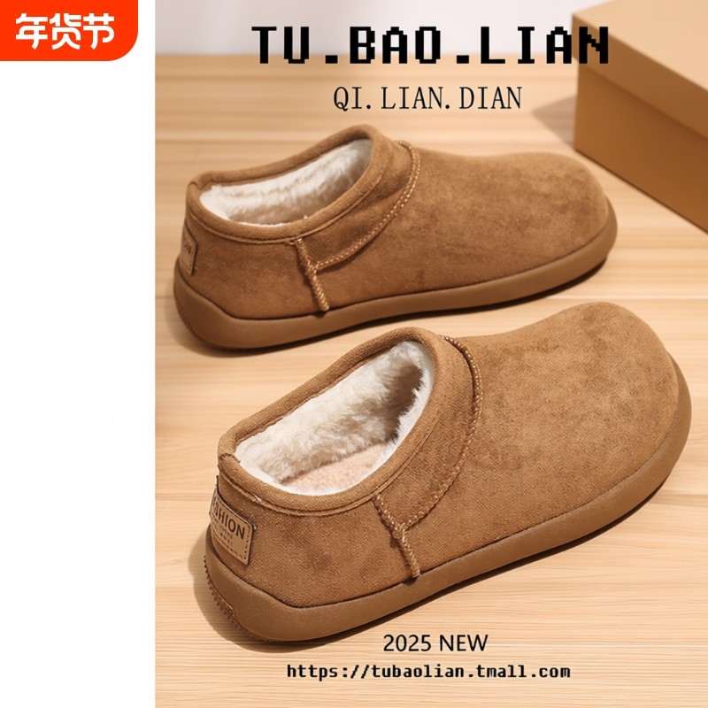 低帮厚底雪地靴女2025新款冬季懒人一脚蹬毛毛棉鞋加绒加厚女鞋子