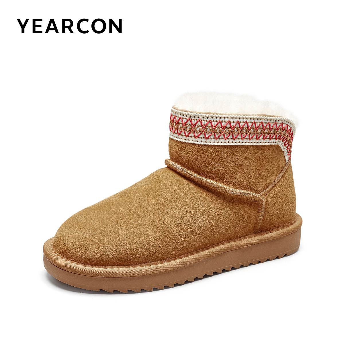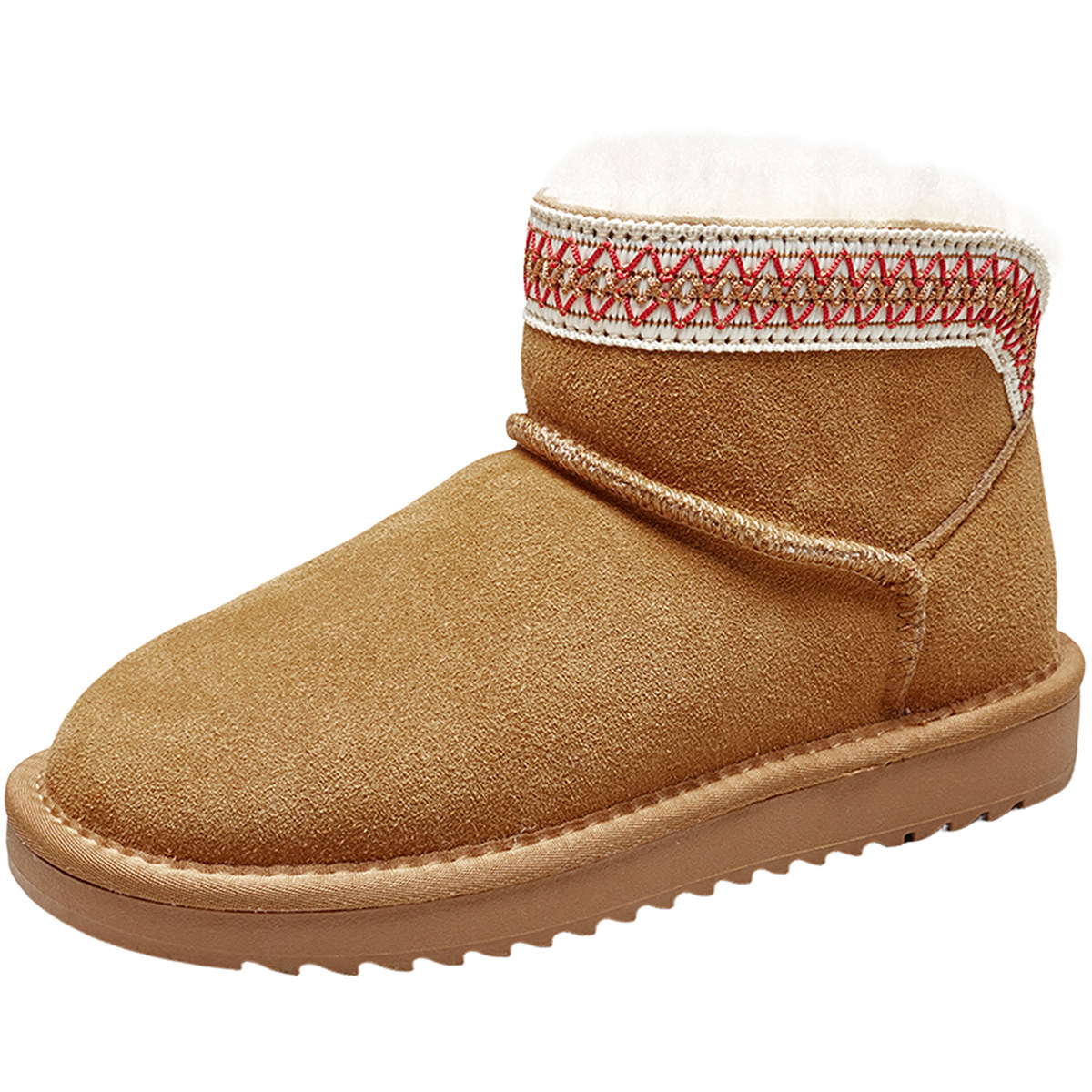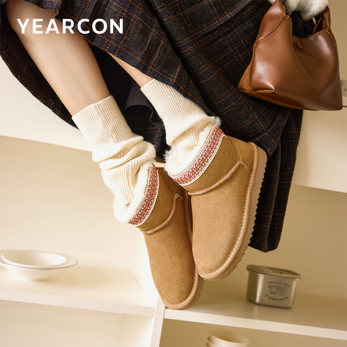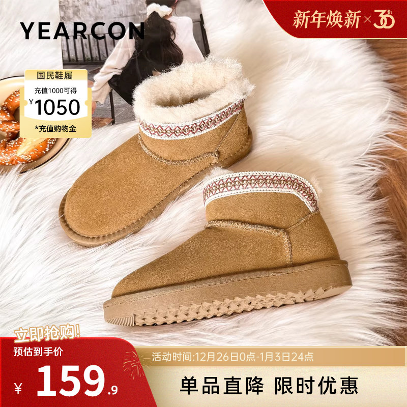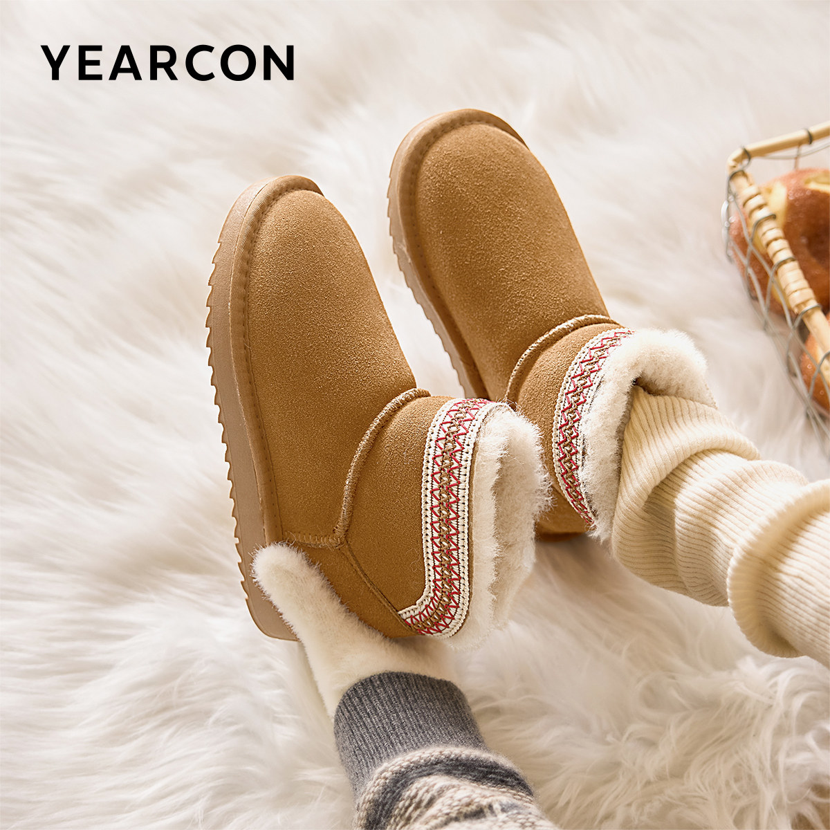 意尔康女鞋2025冬季新款加绒保暖棉鞋平底短筒雪地靴户外休闲短靴