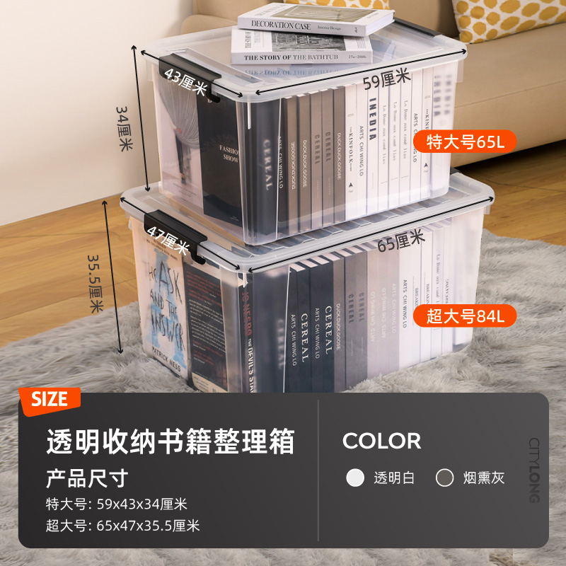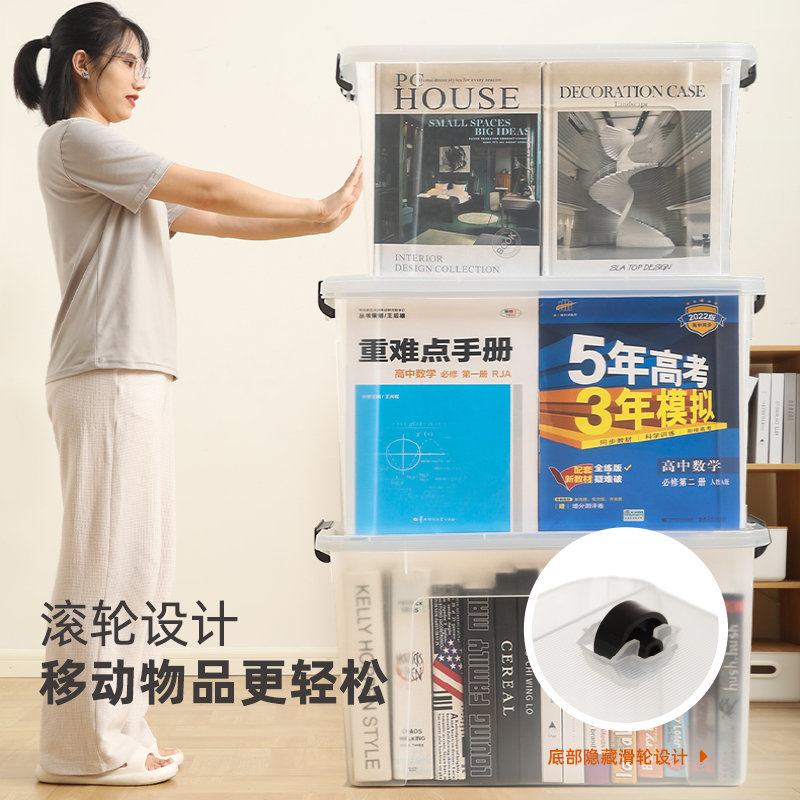 禧天龙书本收纳箱学生书本书籍收纳神器家用书箱透明装书收纳盒
