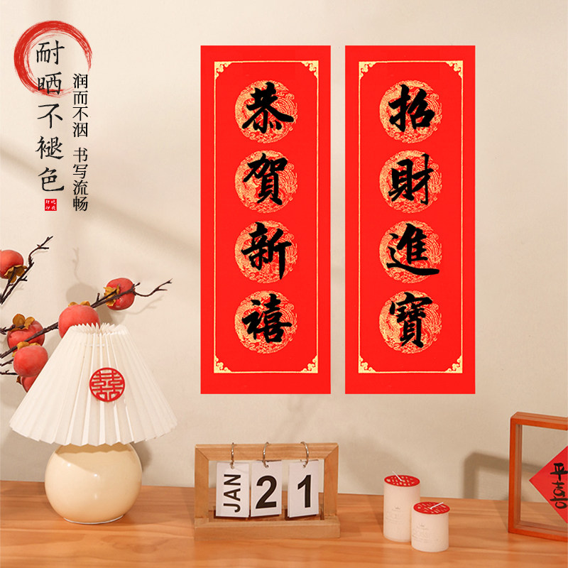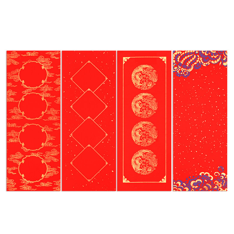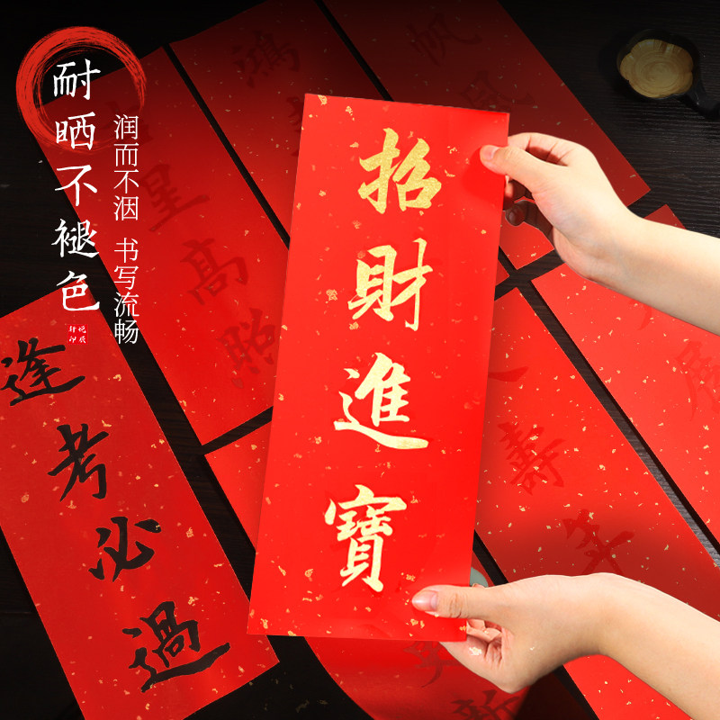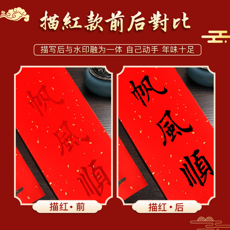 四字小对联新款挥春对联纸四言空白描红万年红纸福字手写对联书法专用宣纸春节装饰门贴灯笼蜡染描紅行楷洒金