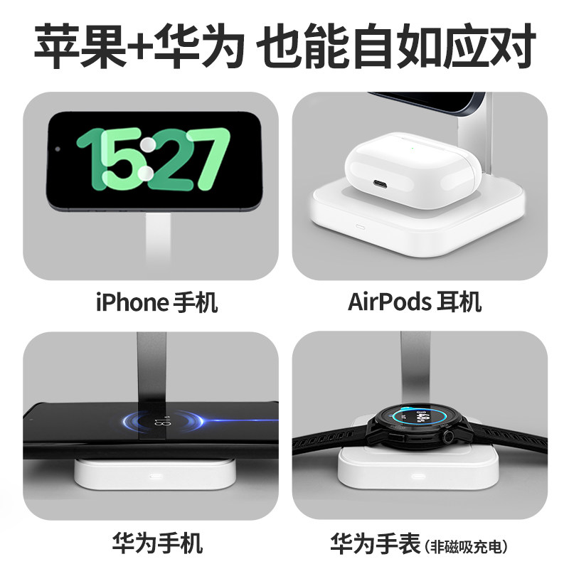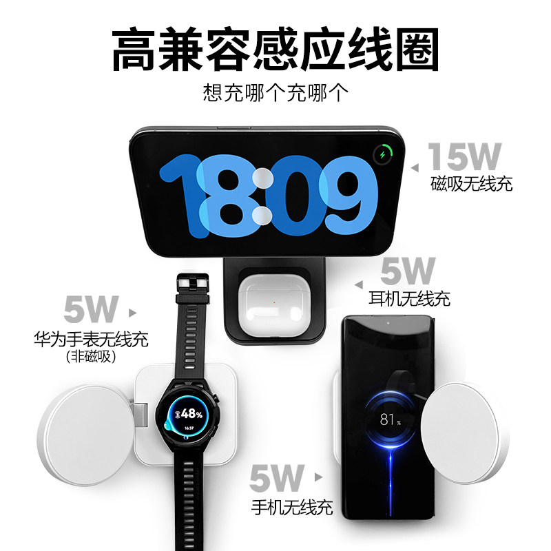 MagSafe三合一无线充电器磁吸充电器折叠手机支架适用苹果16iphone17promax华为Mate80耳机Airpods多功能立式