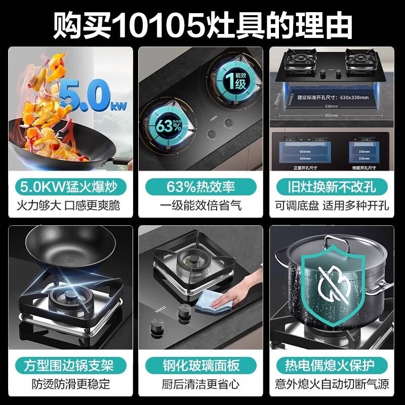 华帝燃气灶i10105煤气灶双灶家用嵌入天然气台式液化气猛火灶具cn