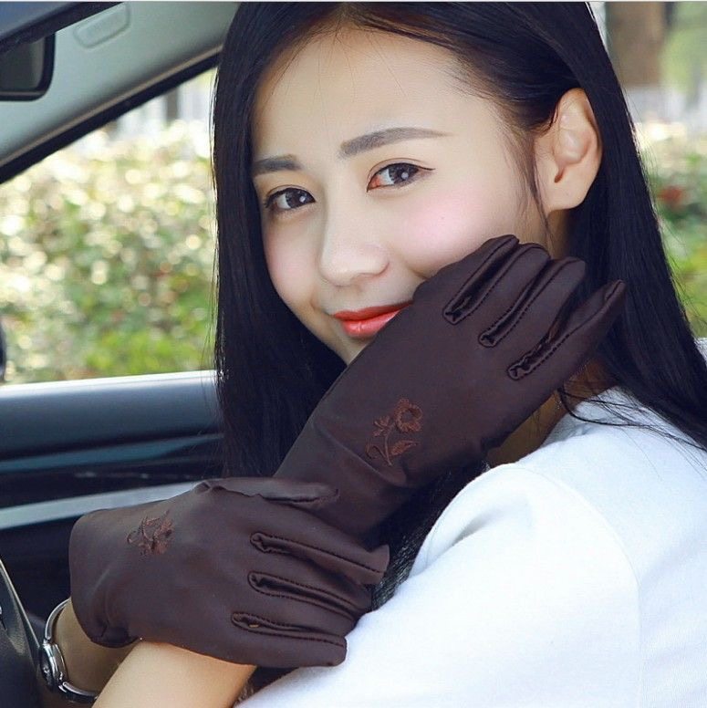 春秋薄款刺绣手套礼仪跳广场舞冰丝透气防晒弹力骑行开车女士手套