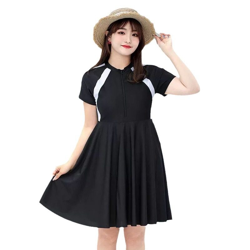 泳衣女加肥加大裙式连体保守大码胖mm200斤遮肚显瘦宽松温泉泳装