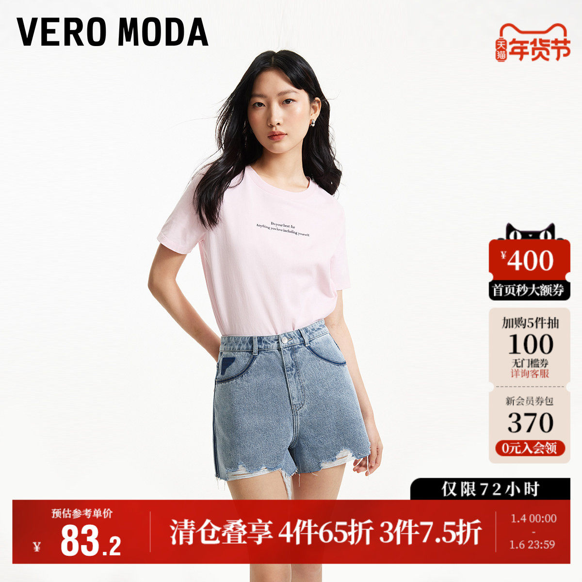 Vero Moda奥莱牛仔短裤女秋季新款高腰A字撞色简约时尚裤子流行