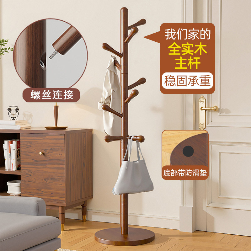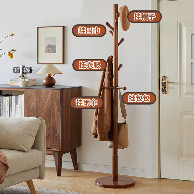 实木衣帽架落地家用玄关挂衣架客厅简易加粗办公室挂包架卧室置物