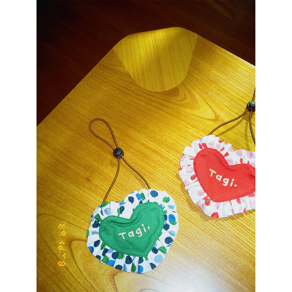 Tagi.怦怦爱心《哈哈》宠物口水巾爱心花边格纹狗猫围脖围兜