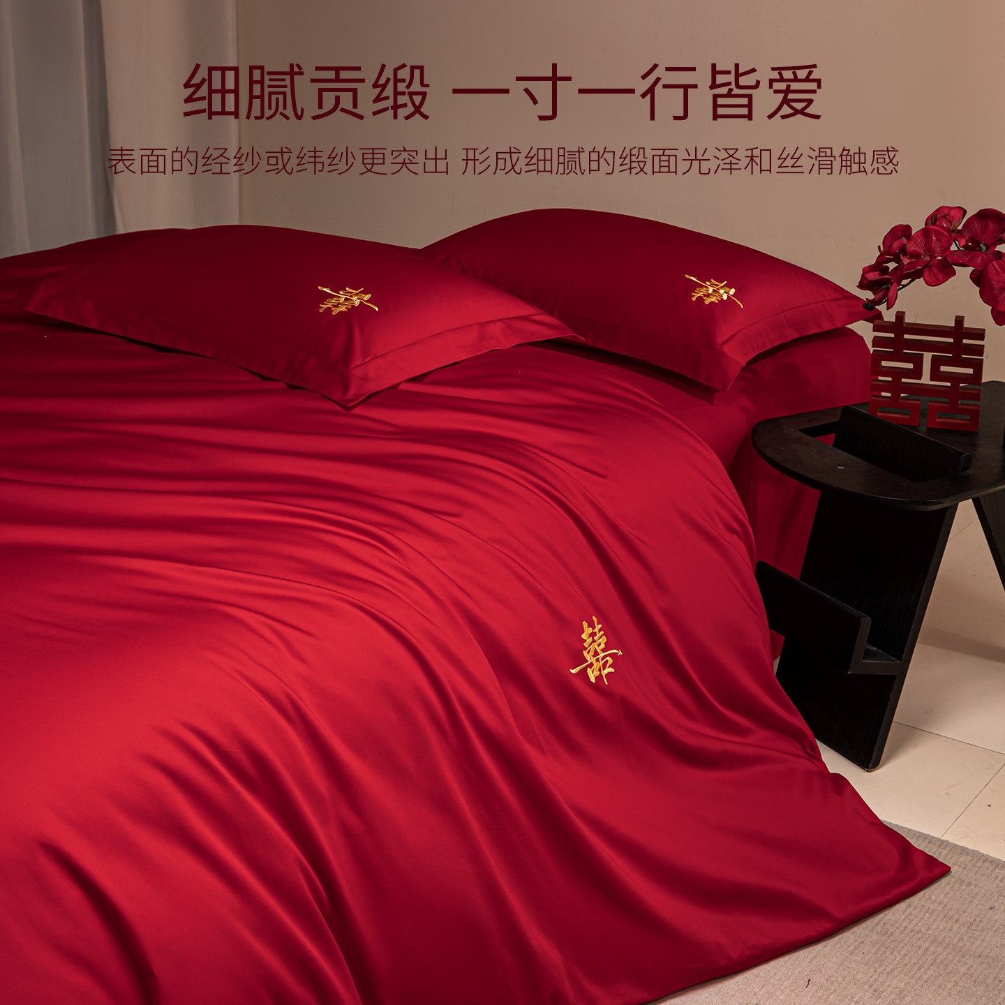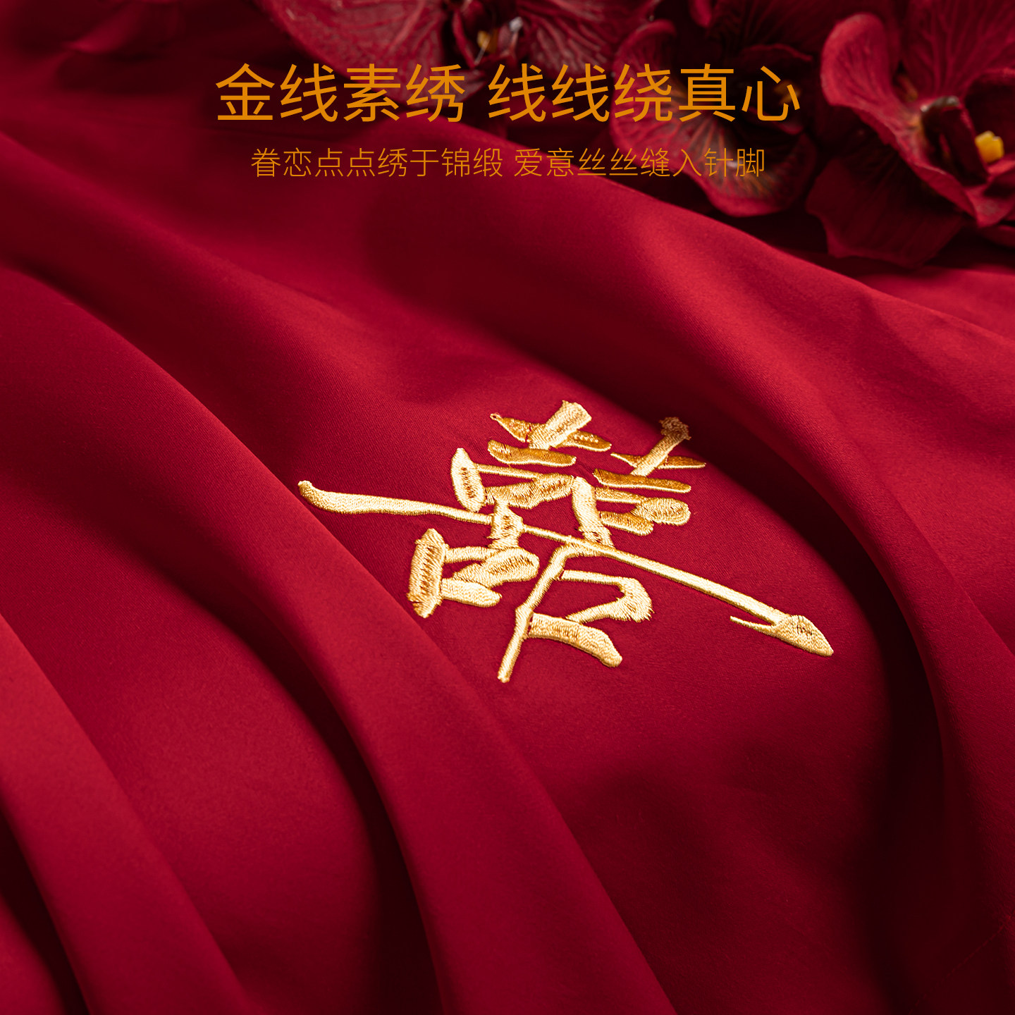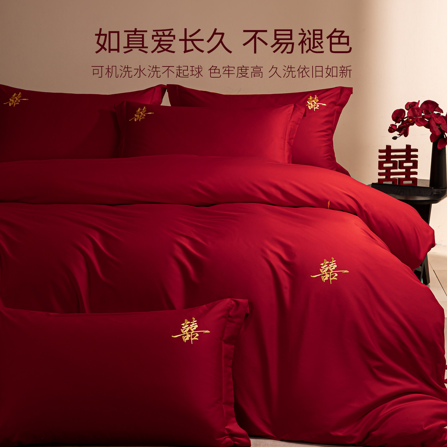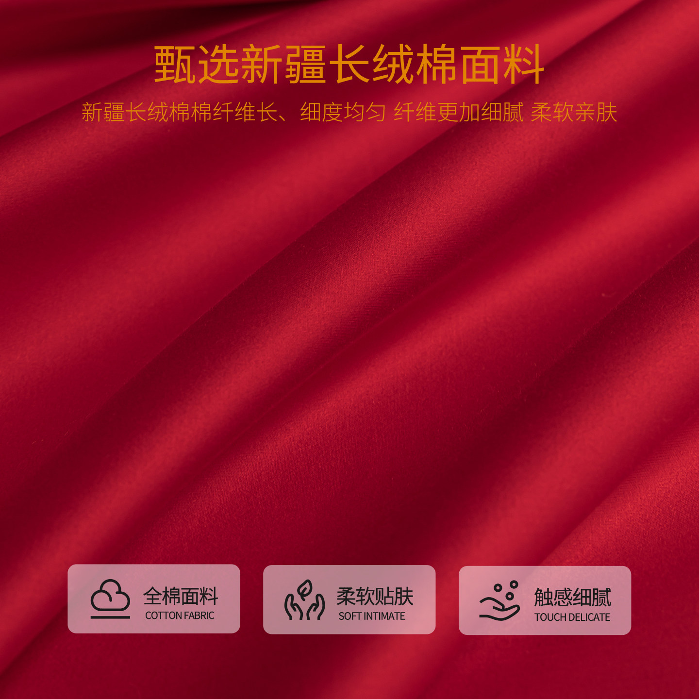 新中式100Pro长绒棉婚庆四件套纯棉陪嫁喜庆被套全棉红色床上用品