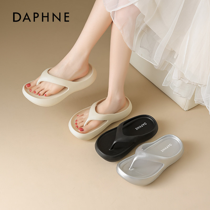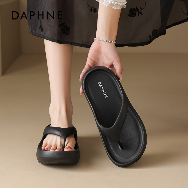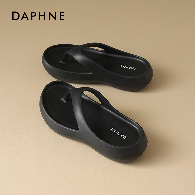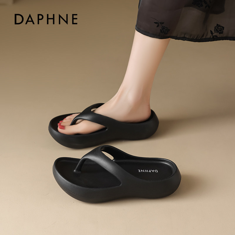 达芙妮黑色厚底拖鞋女外穿夏2025新款超火踩屎感人字拖绝美凉拖鞋