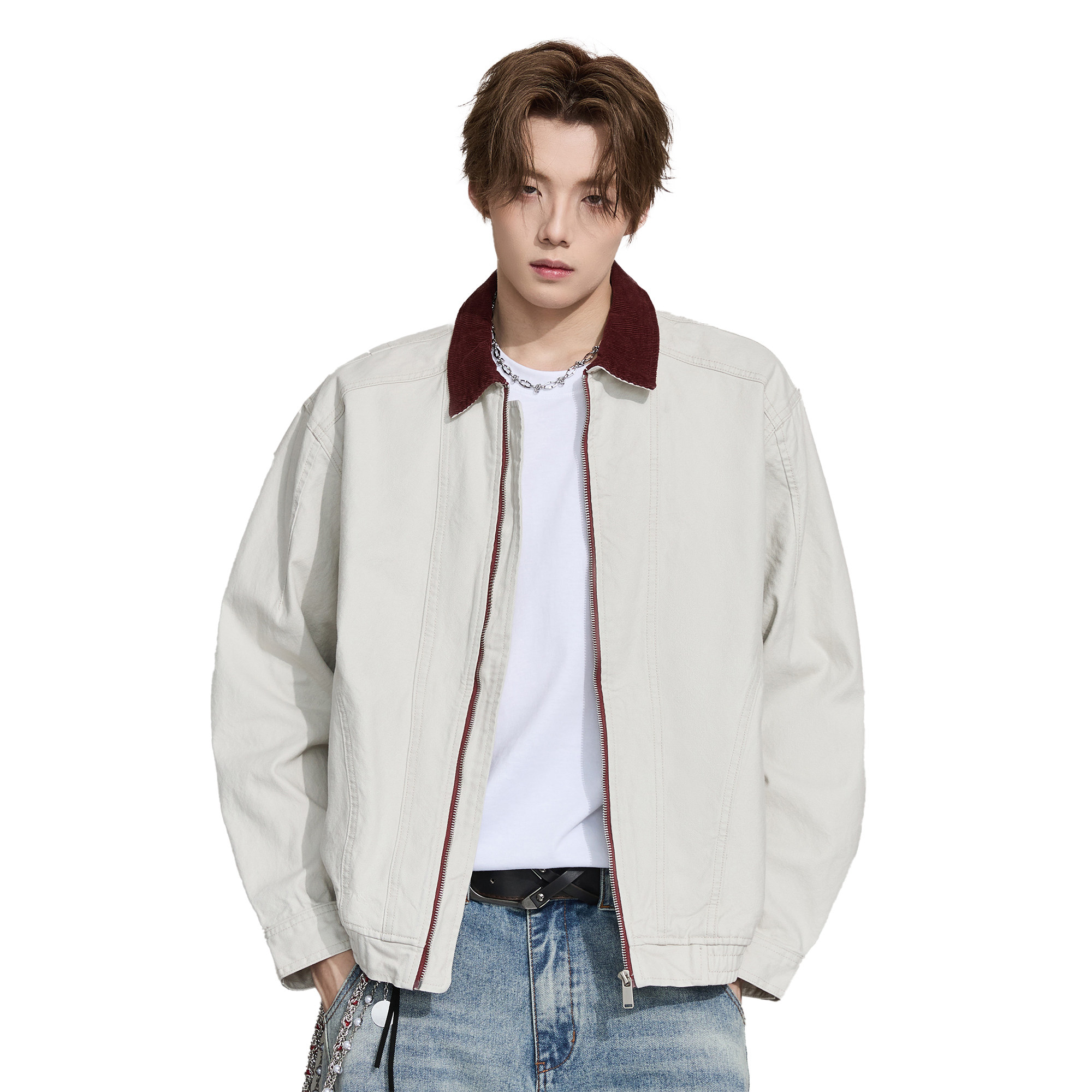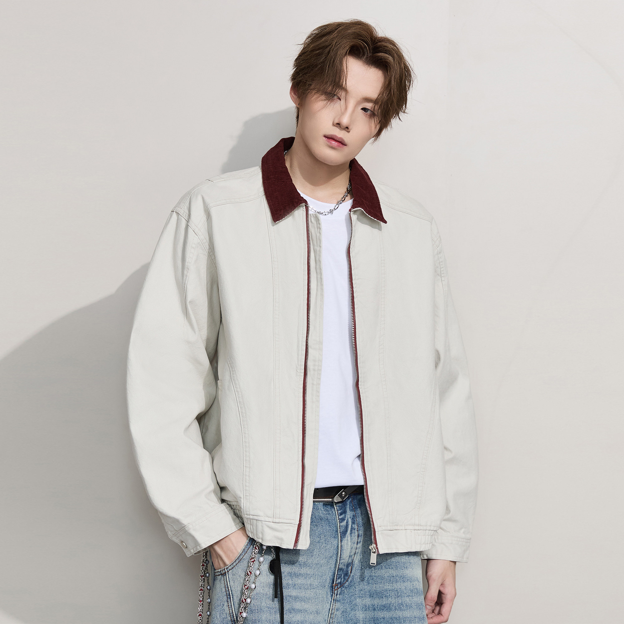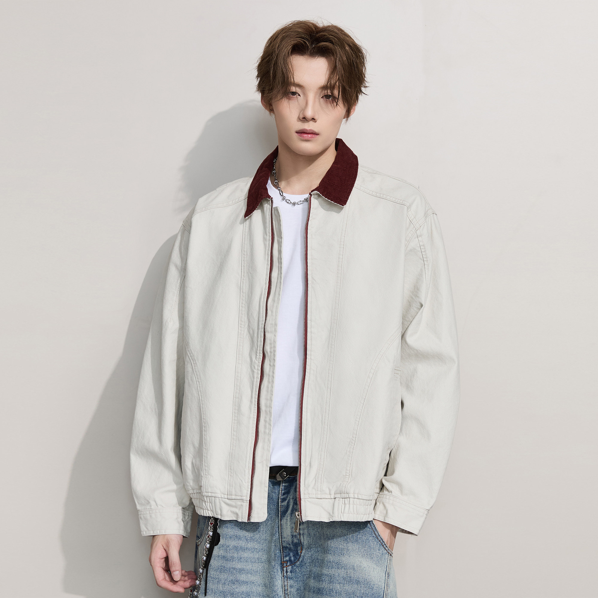 ALLIN 美式巴恩风复古翻领外套男春秋季纯棉工装休闲情侣行政夹克