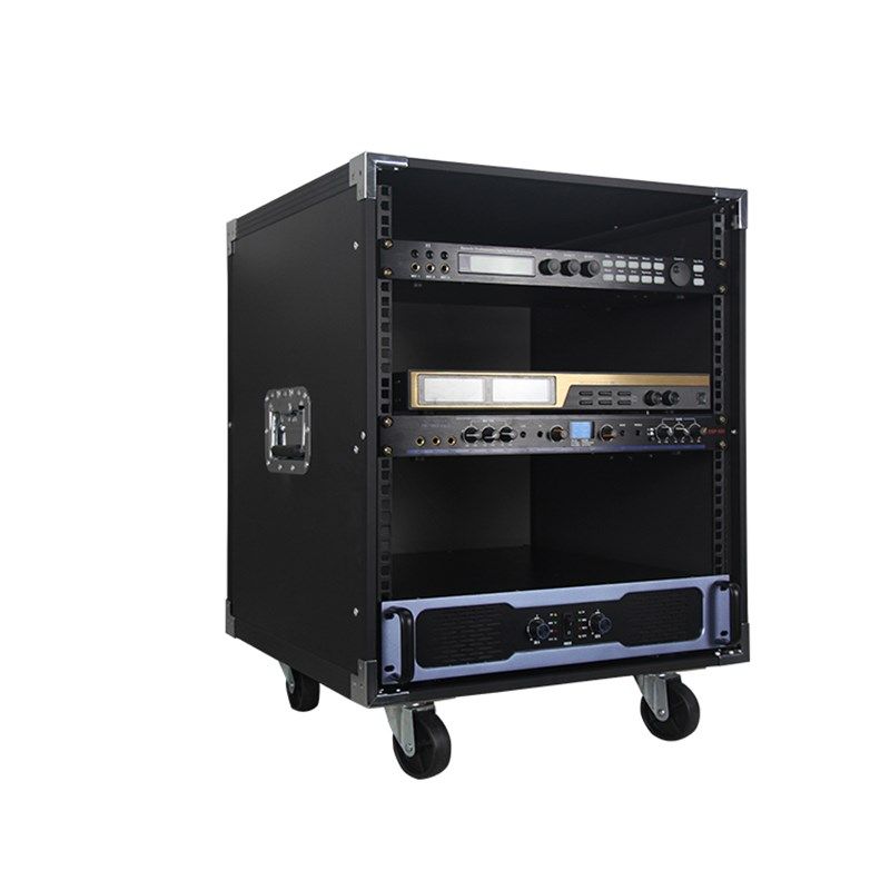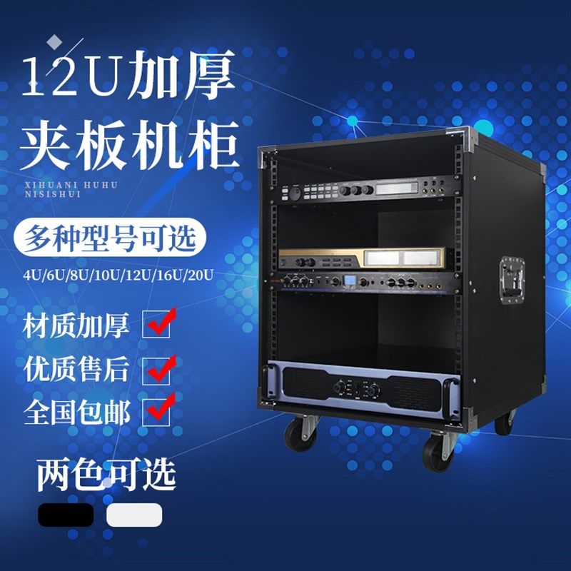 16U黑铝带门加厚夹层板功放机柜12U广场演出P带锁箱子静音移动轮