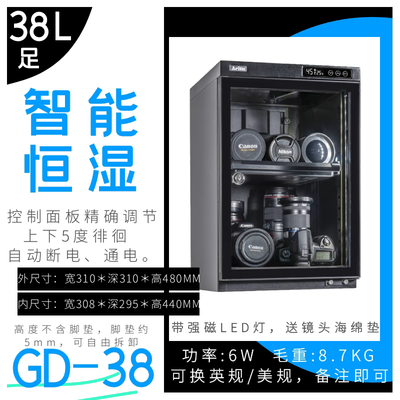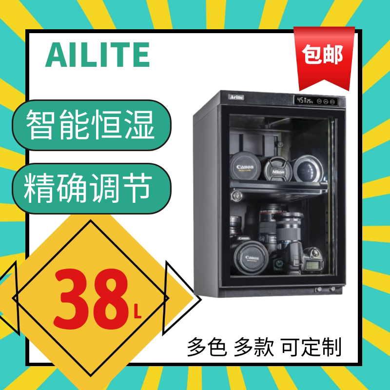 艾励特相机防潮箱电子干燥柜话筒电容麦克风无人机密封式收纳箱单反镜头邮票包包数码文件手表小型防潮柜38L