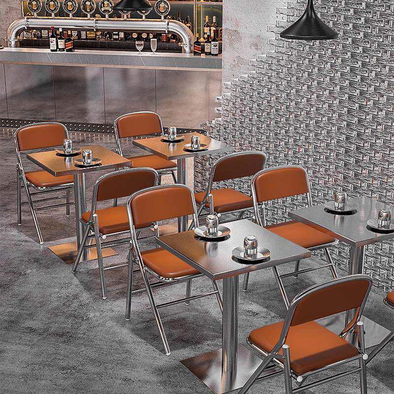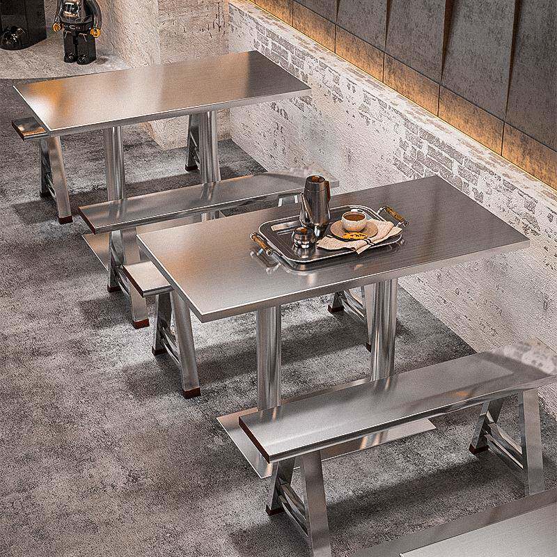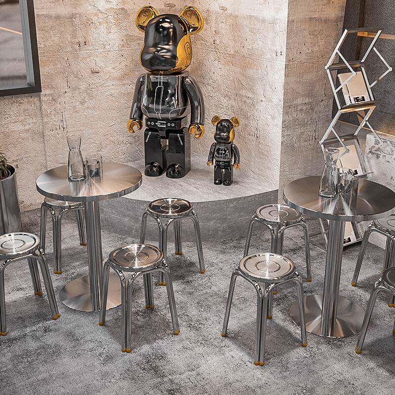 凳子工业风圆凳奶茶店不锈钢方桌烧烤店长桌烤肉店餐桌椅组合椅子