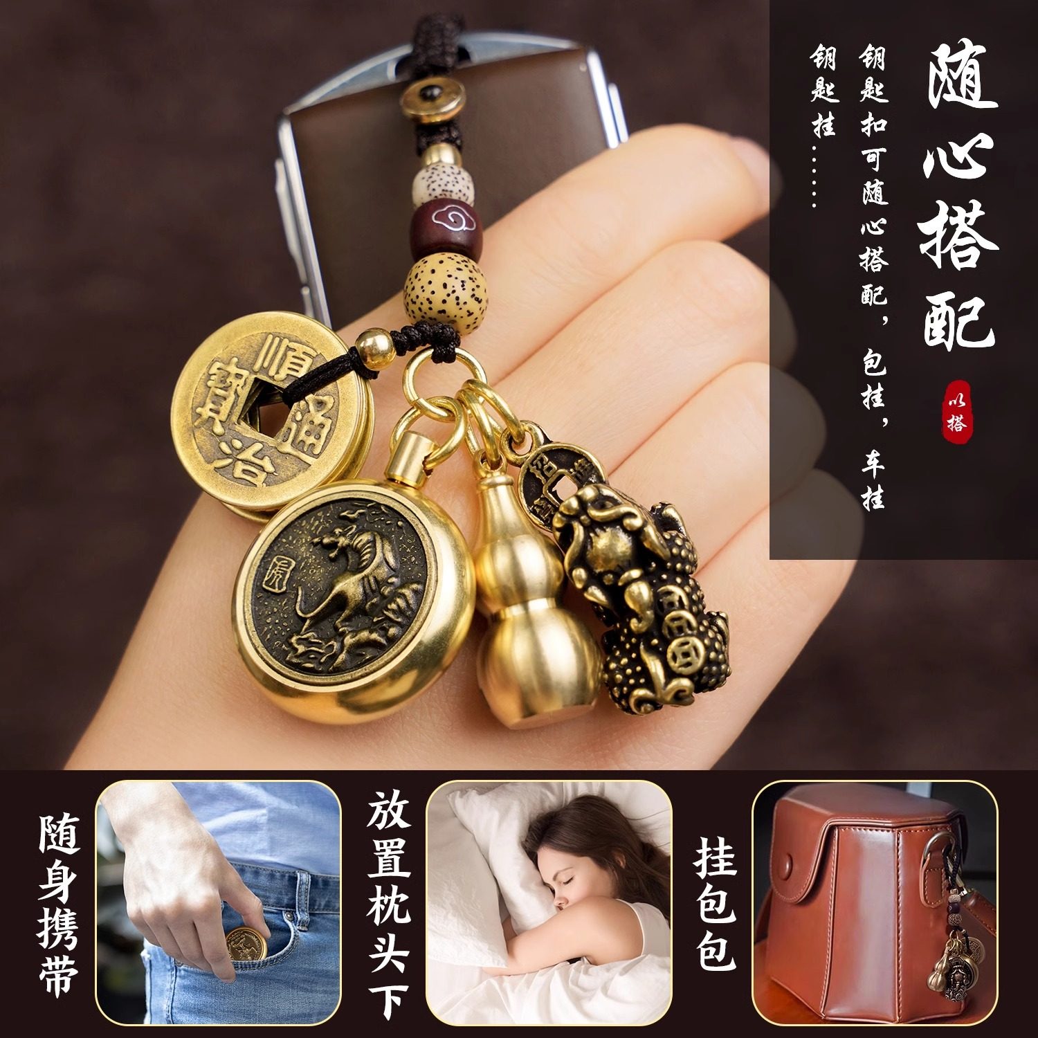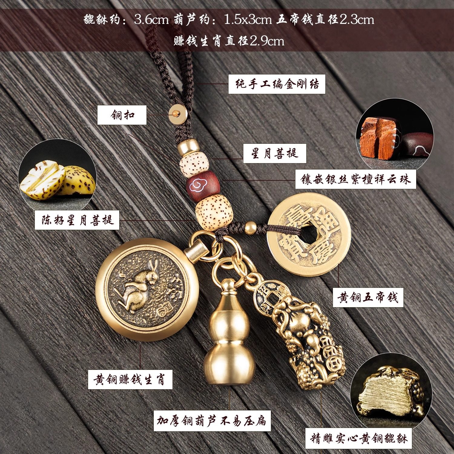 十二生肖葫芦钥匙扣挂件招财貔貅汽车钥匙链挂饰件五帝钱吊坠朱砂