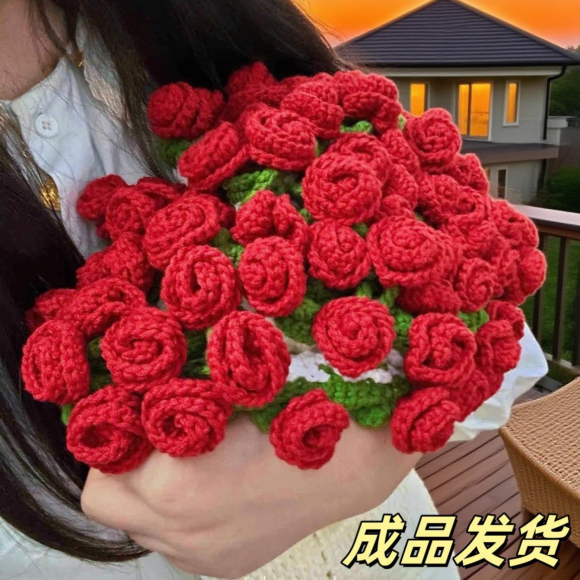 成品玫瑰花束毛毯子鲜花手工编织披肩新年生日礼物女生送闺蜜实用