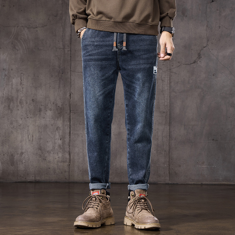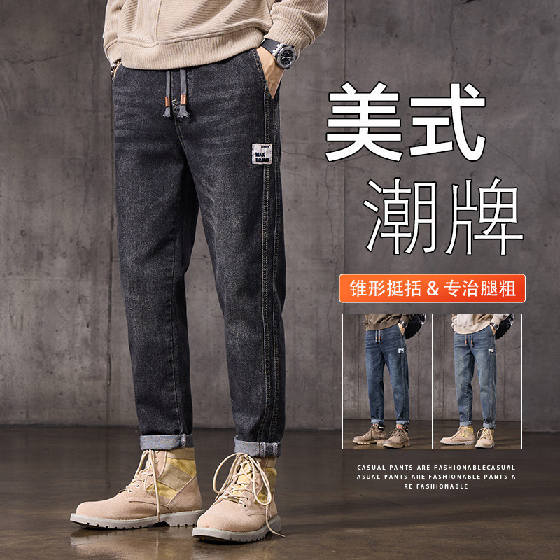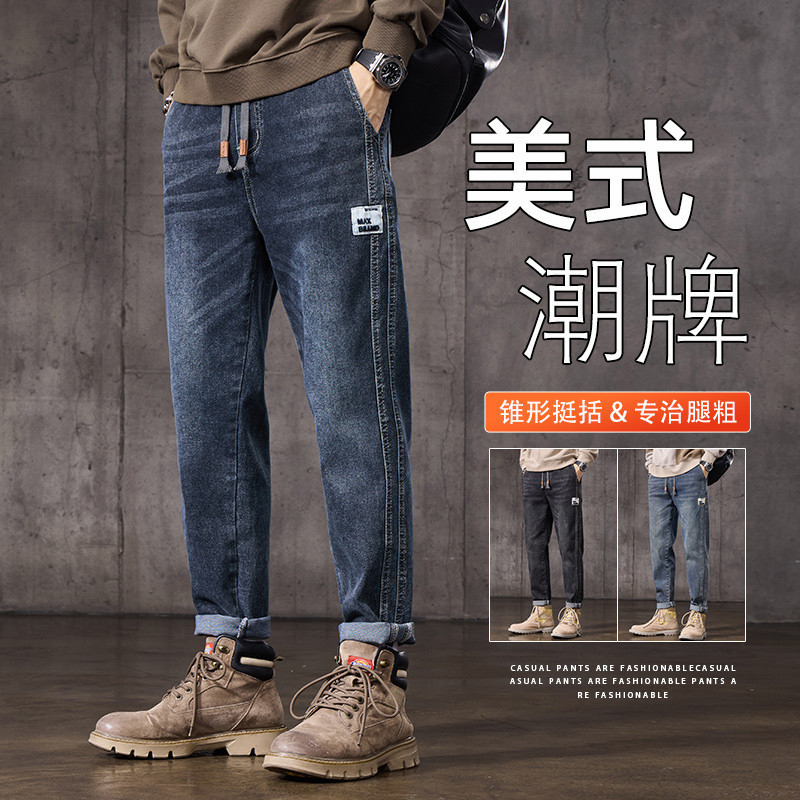 复古牛仔裤男宽松直筒松紧腰2025年春秋季新款潮牌阔腿男生长裤子
